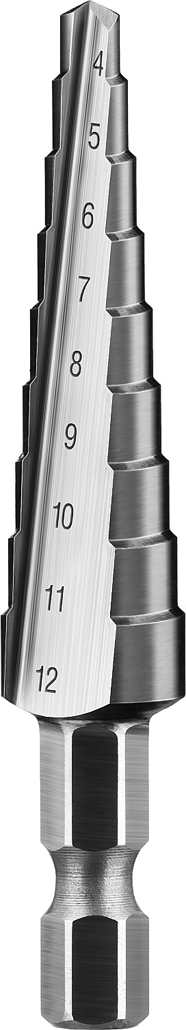 ЗУБР 4-12 мм, 9 ступеней, сталь Р6М5, ступенчатое сверло, Профессионал (29670-4-12-9)