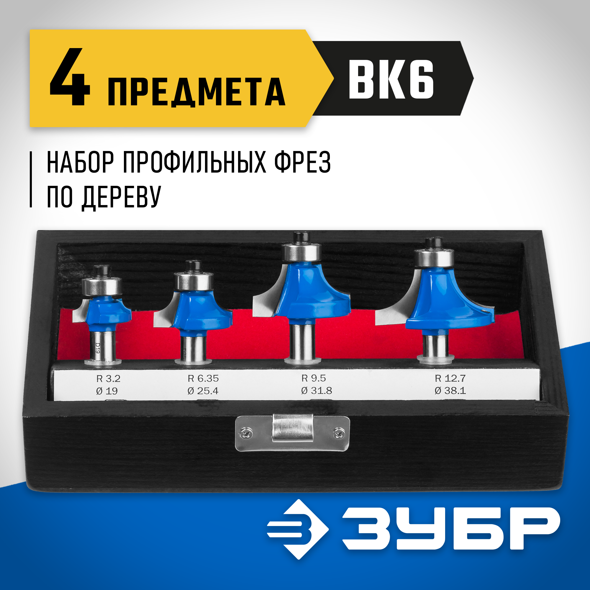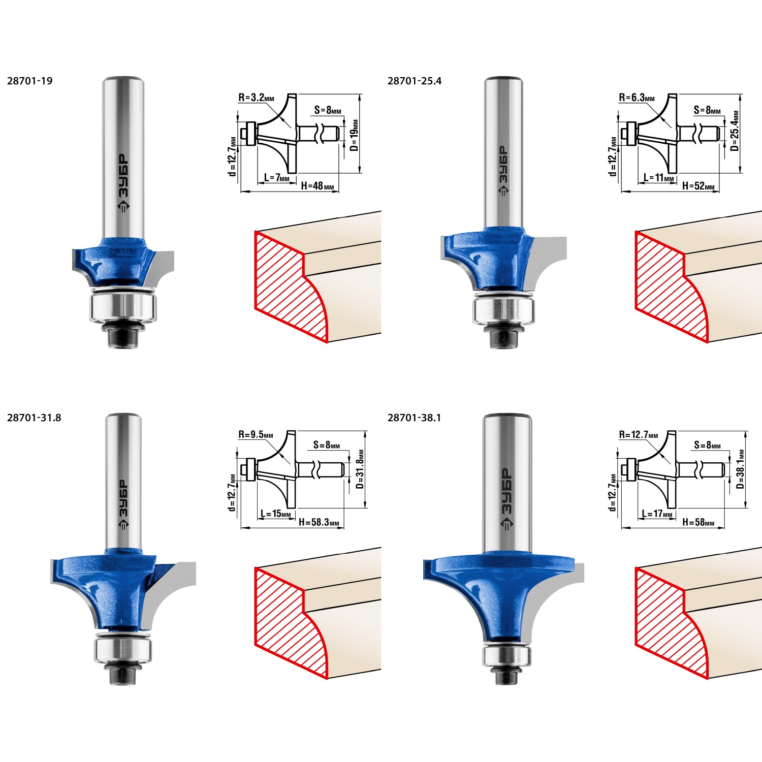 ЗУБР 4 шт, набор профильных фрез по дереву, Профессионал (28795-H4-2)