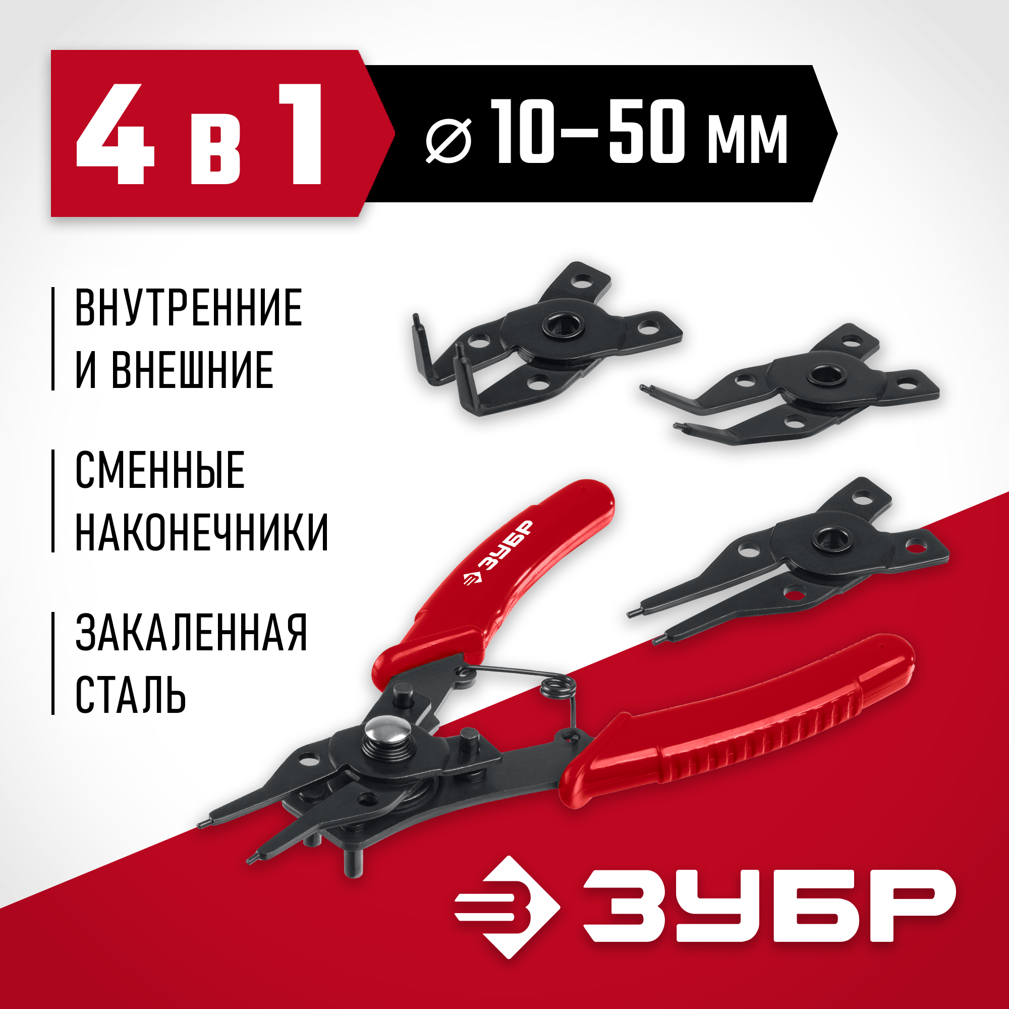 - Инновационная конструкция позволяет работать с внутренними и внешними стопорными кольцами