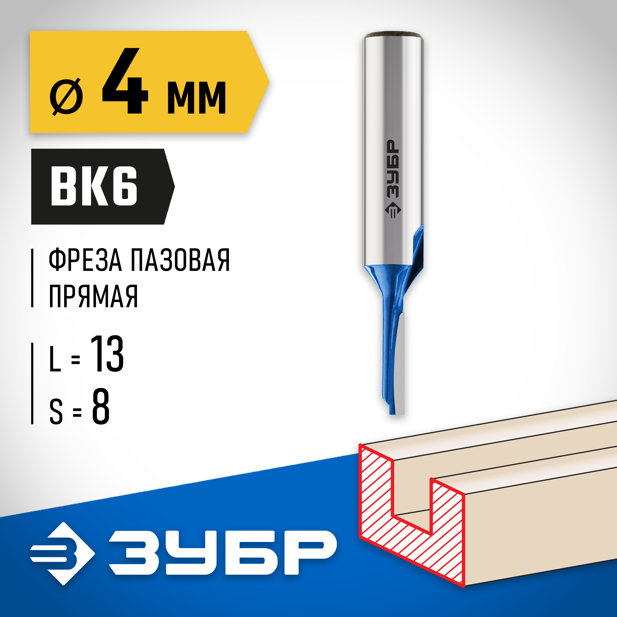 ЗУБР 4 x 13 мм, хвостовик 8 мм, фреза пазовая прямая, Профессионал (28753-4-13)