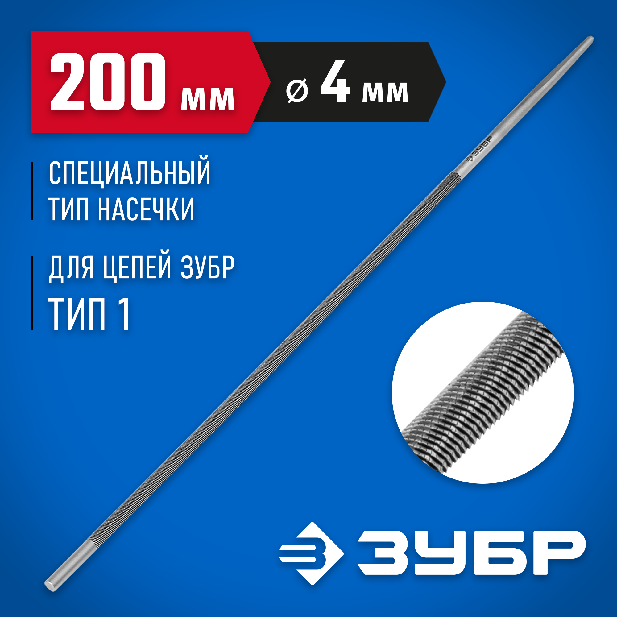 - сталь У13А. Для цепей ЗУБР Тип 1. Диаметр 4.0 мм (5/32″). Для цепей с шагом 1/4″ и Низкопрофильных цепей с шагом 3/8″