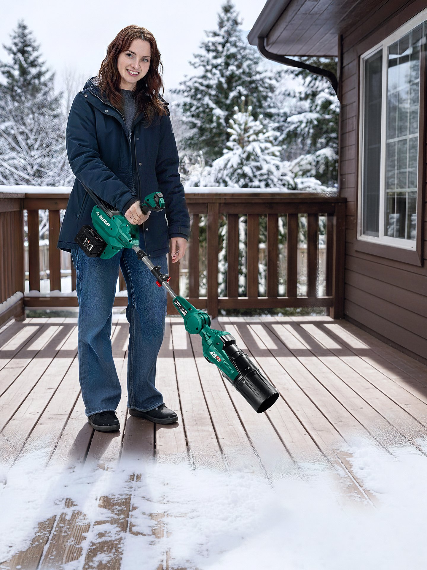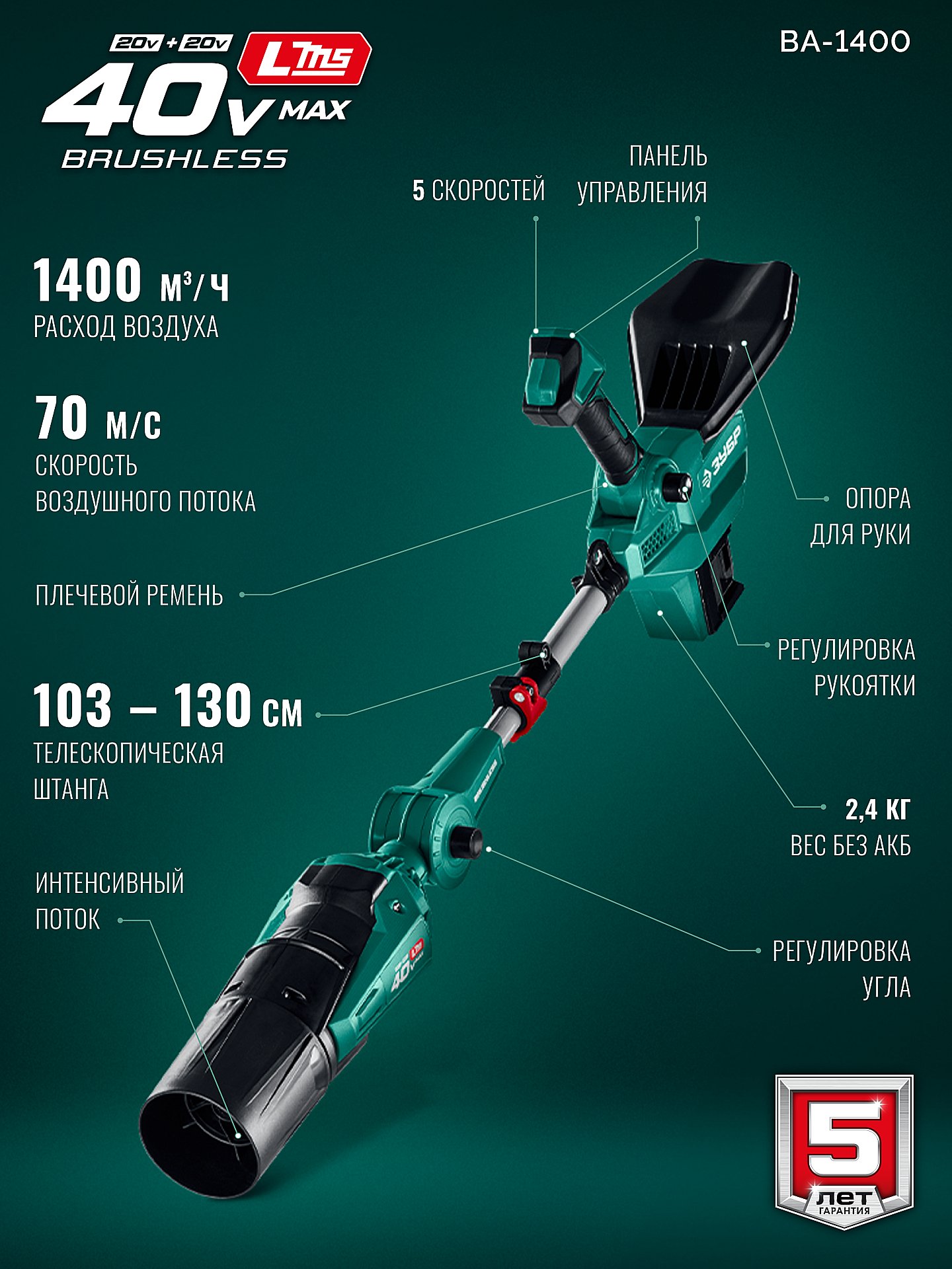 Мощная аккумуляторная воздуходувка с телескопической штангой легко справляется с уборкой больших участков от листьев и мусора. Надежный, высокопроизводительный и экономичный BRUSHLESS двигатель с внешним ротором, мощная турбина и высокоскоростной TURBO-режим помогают эффективной и быстрой работе. Регулировка угла обдува, длины штанги и наклона рукоятки позволяет пользователю адаптировать воздуходувку под конкретные задачи и условия работы, обеспечивая комфорт и эффективность при использовании.