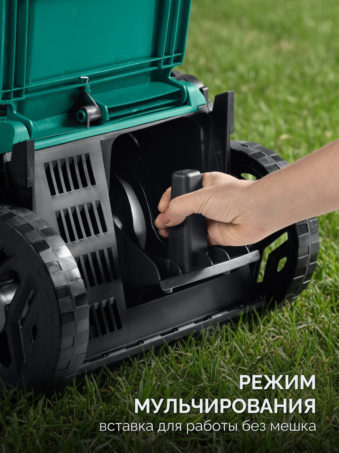 - Функция мульчирования обеспечивает измельчение скошенной травы для ее более простой утилизации