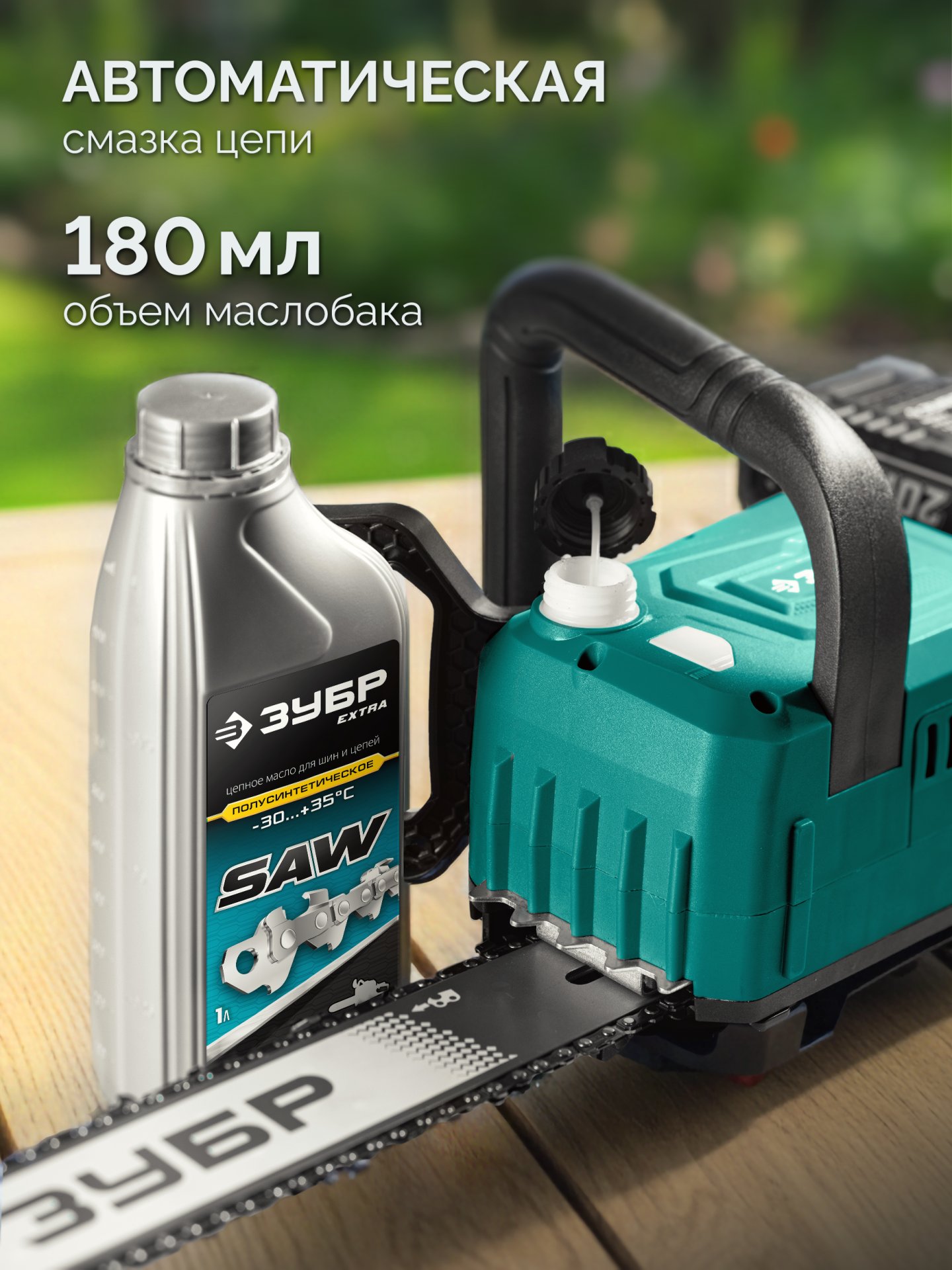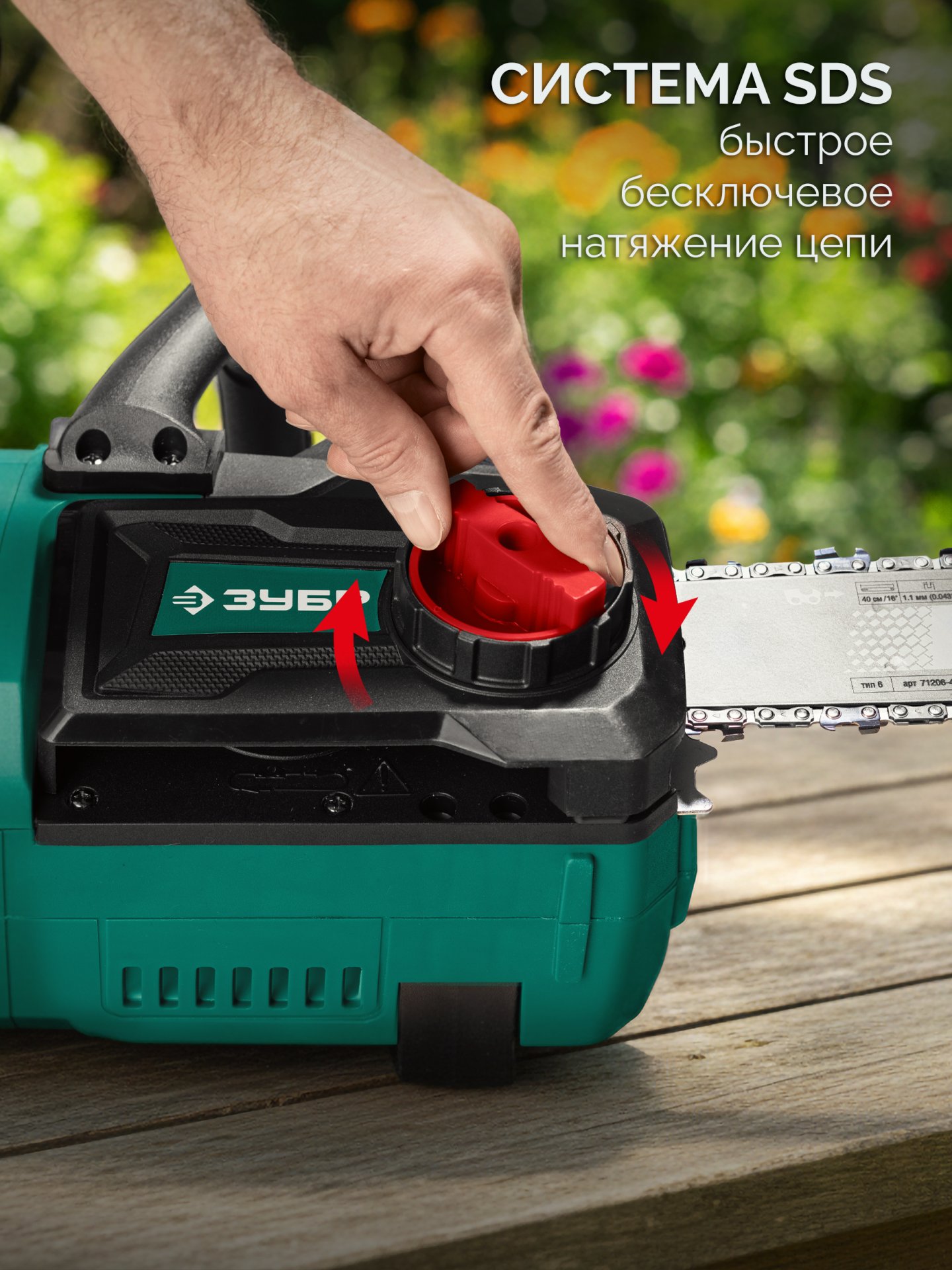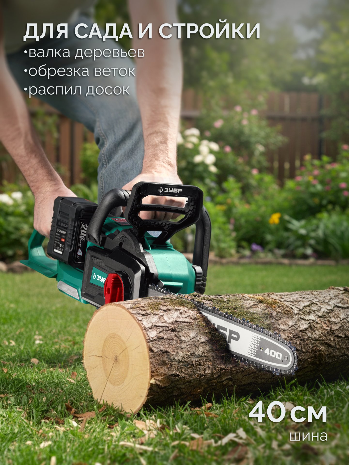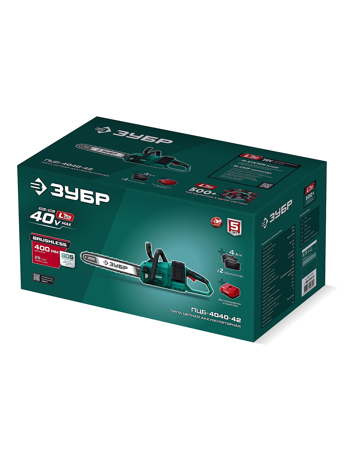 Мощная аккумуляторная цепная пила ЗУБР с напряжением 40В создана для работы в саду, обрезки веток, пиления небольших деревьев, а так же проведения различных строительных и ремонтных работ. Мощный BRUSHLESS двигатель и качественная цепь позволят быстро выполнить работу