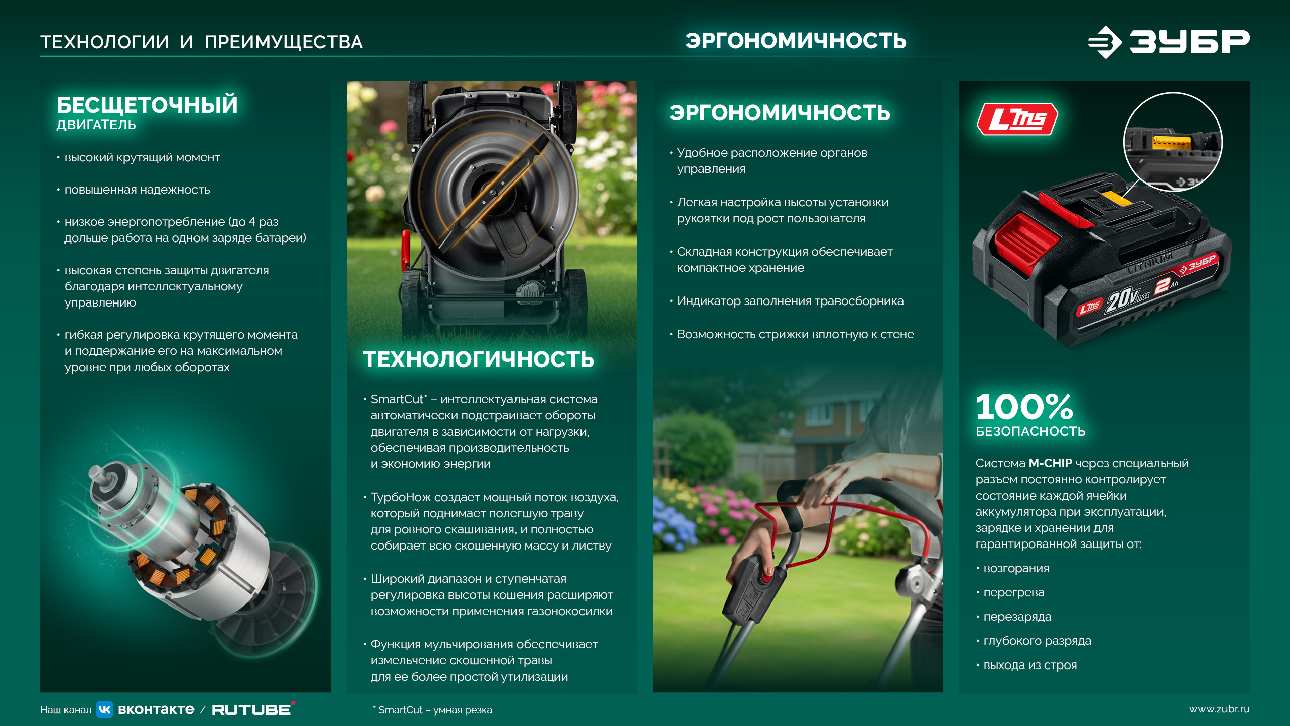 - SmartCut - интеллектуальная система автоматически поддерживает обороты двигателя в зависимости от нагрузки, обеспечивая производительность и экономию энергии,