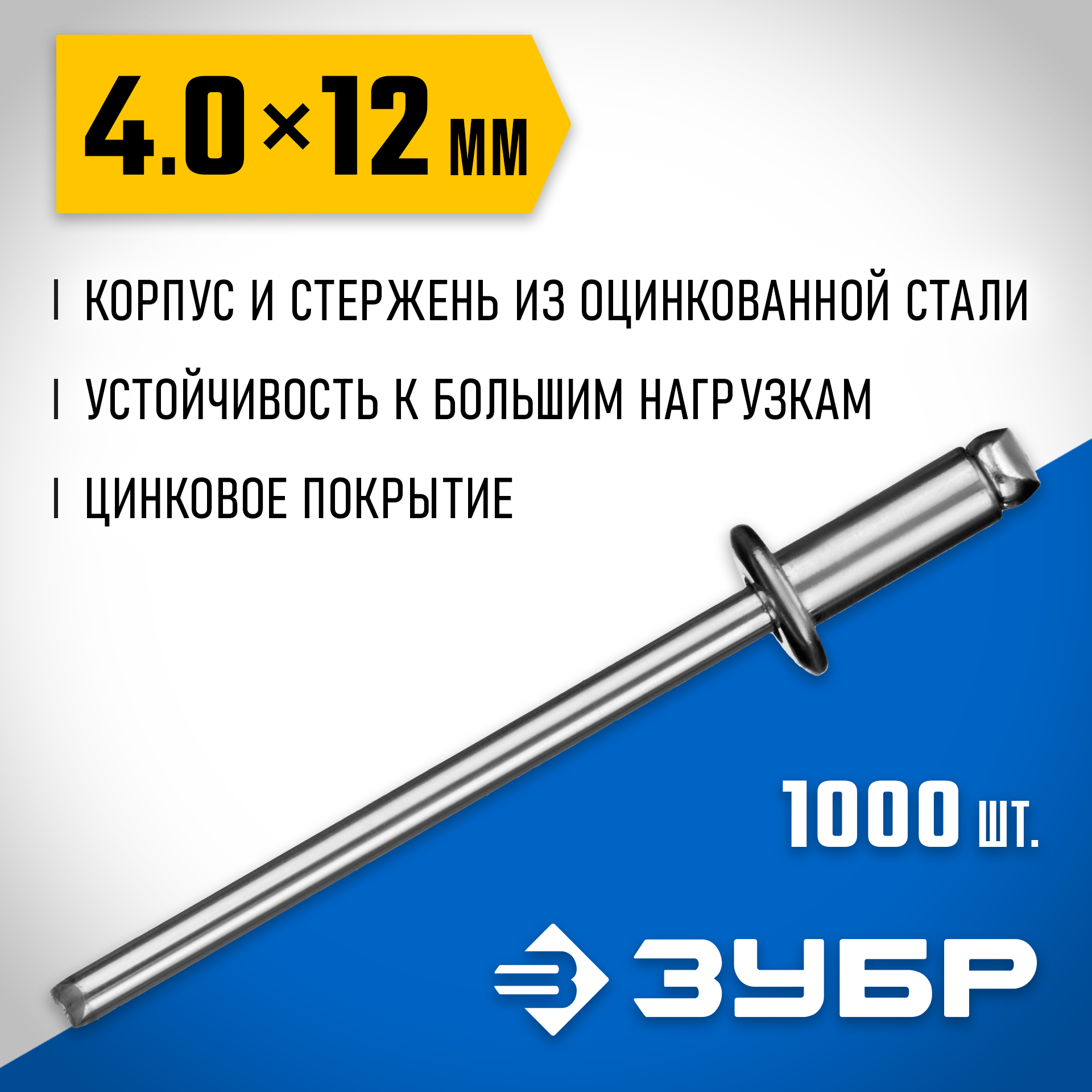 ЗУБР 4.0 x 12 мм, 1000 шт, стальные заклепки, Профессионал (31312-40-12)