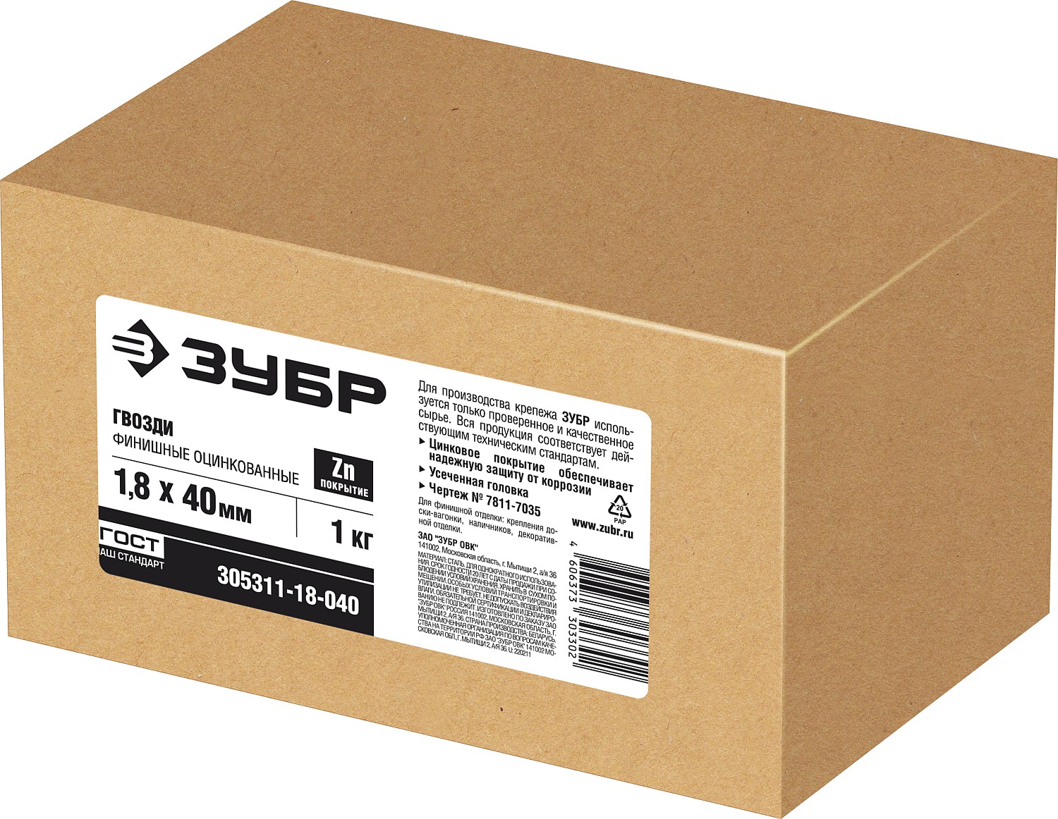ЗУБР 40 x 1.8 мм, цинк, 1 кг, финишные гвозди (305311-18-040)