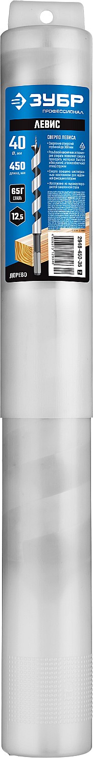 ЗУБР 40 x 450/360 мм, шестигранный хвостовик, cверло левиса по дереву, Профессионал (2948-450-40)