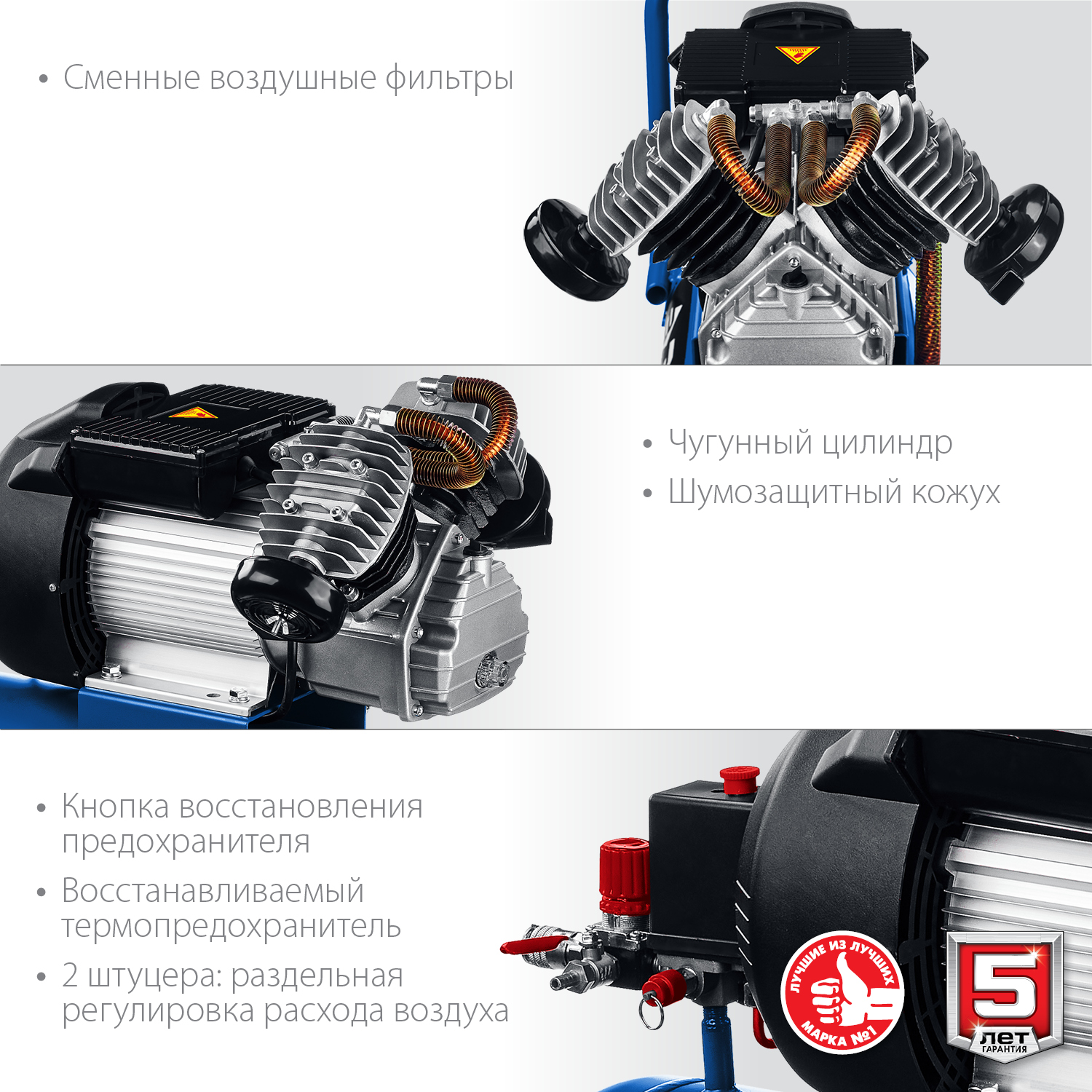 Грамотное сочетание новых технологий и проверенных временем конструкционных решений, которое найдет свое применение в мастерской, на производстве и в строительстве. Серия «Профессионал» отличается увеличенным ресурсом и возможностью подключения двух инструментов, раздельно регулировать расход воздуха через каждый и автоматический режим работы изделия. Высокая производительность, возможность подключения двух инструментов, раздельная регулировка расхода воздуха через каждый позволяет подключать большой ассортимент пневмоинструмента. При правильной эксплуатации в соответствии с рекомендациями производителя ресурс данных компрессоров составит не менее 4000 часов*. * на основании результатов испытаний лаборатории компании АО «ЗУБР ОВК»