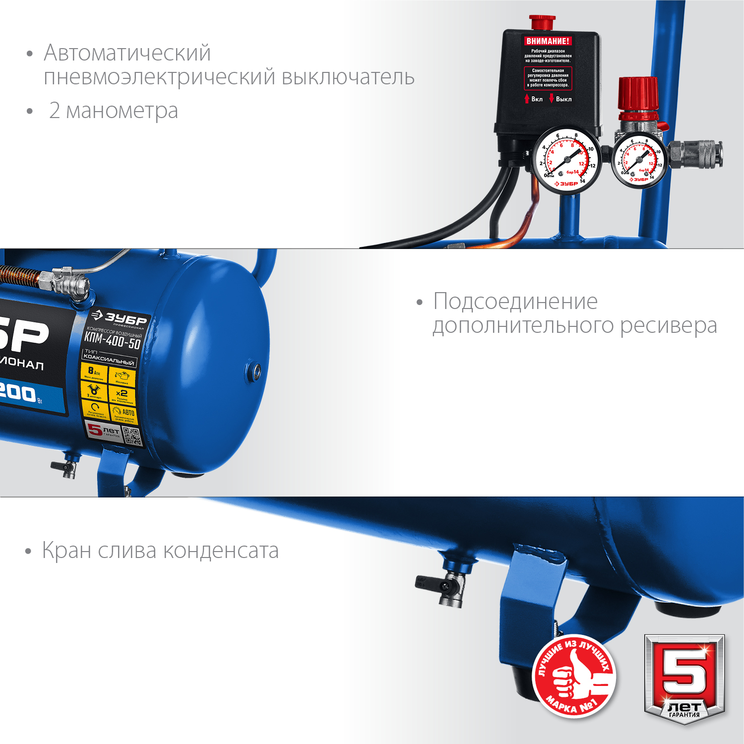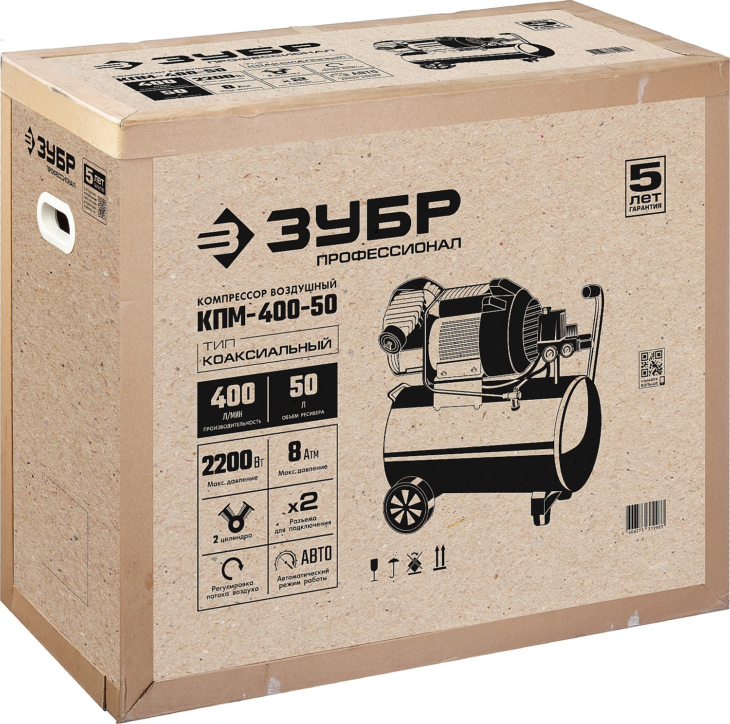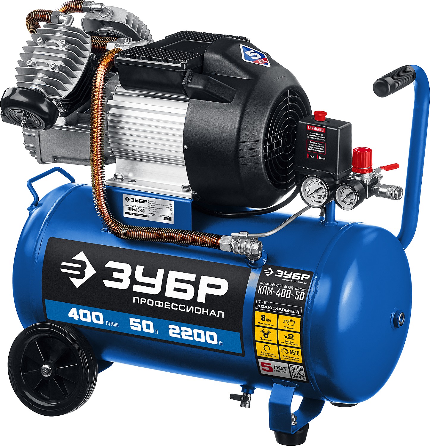 Компрессор ЗУБР 400 л/мин, 50 л, 2200 Вт, масляный Профессионал (КПМ-400-50)