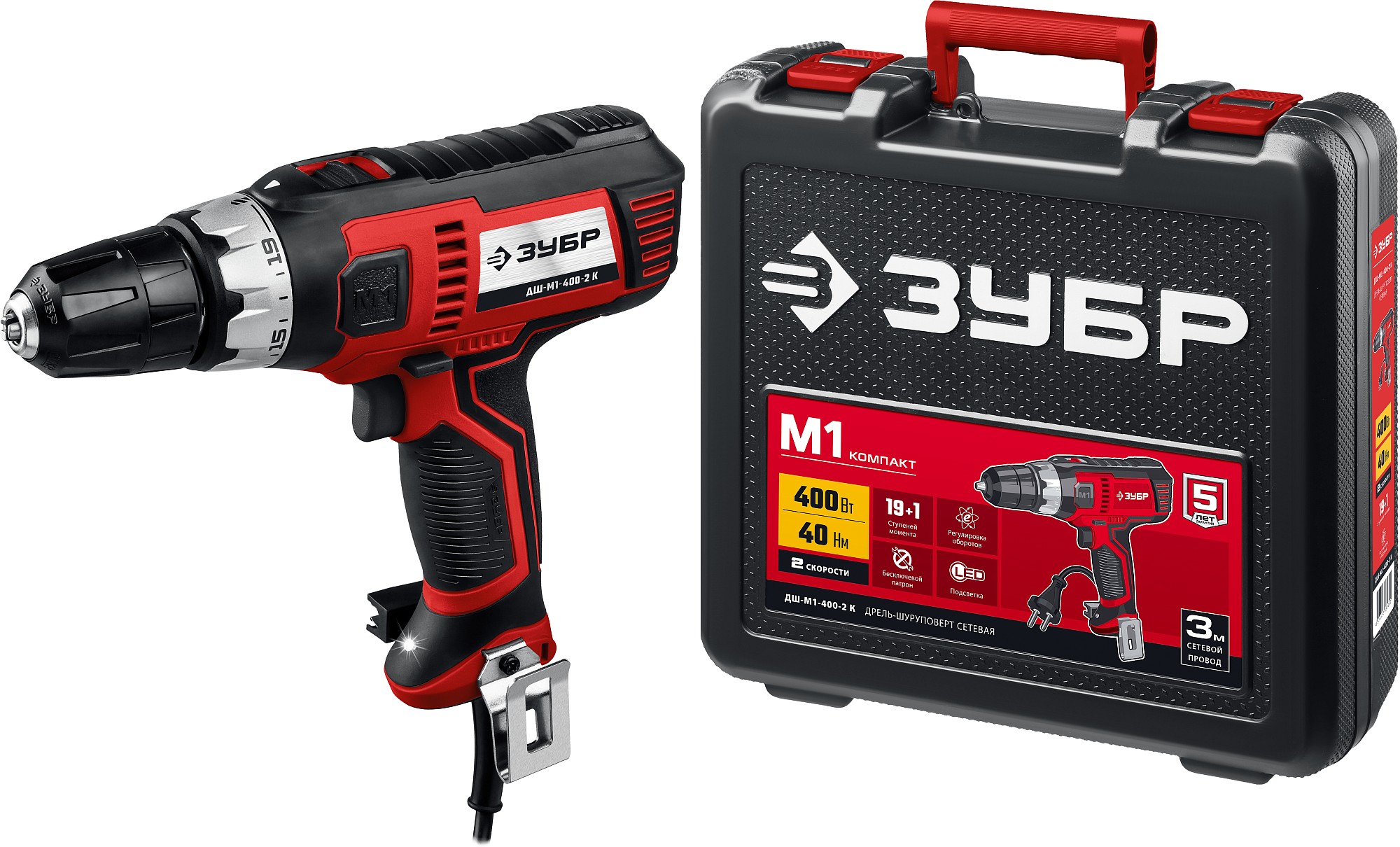 - Двухскоростной редуктор обеспечивает как большой момент для заворачивания крепежа, так и значительную частоту вращения для сверления