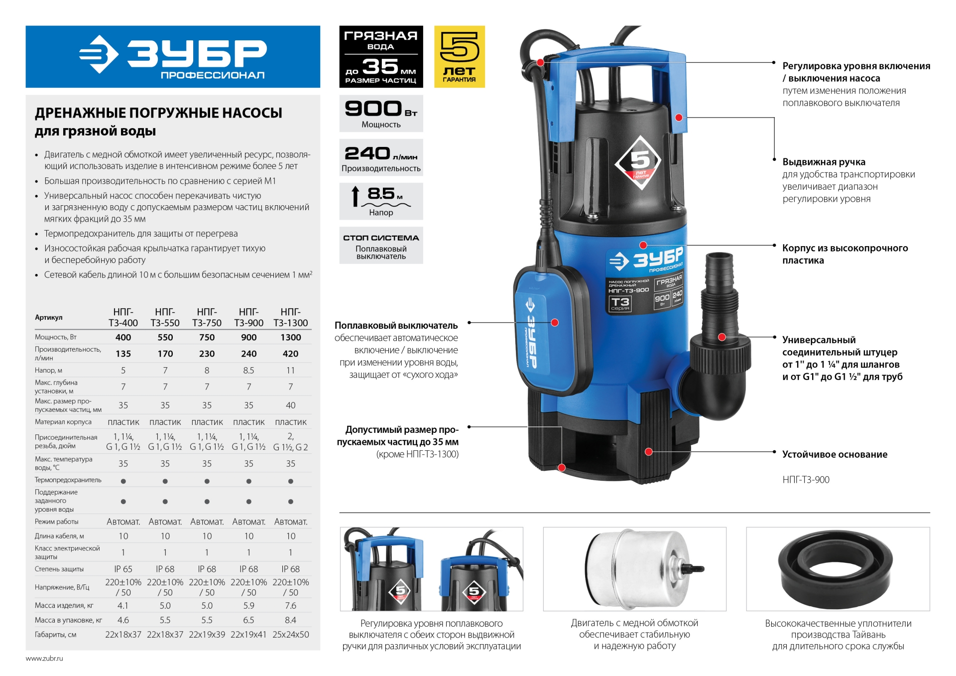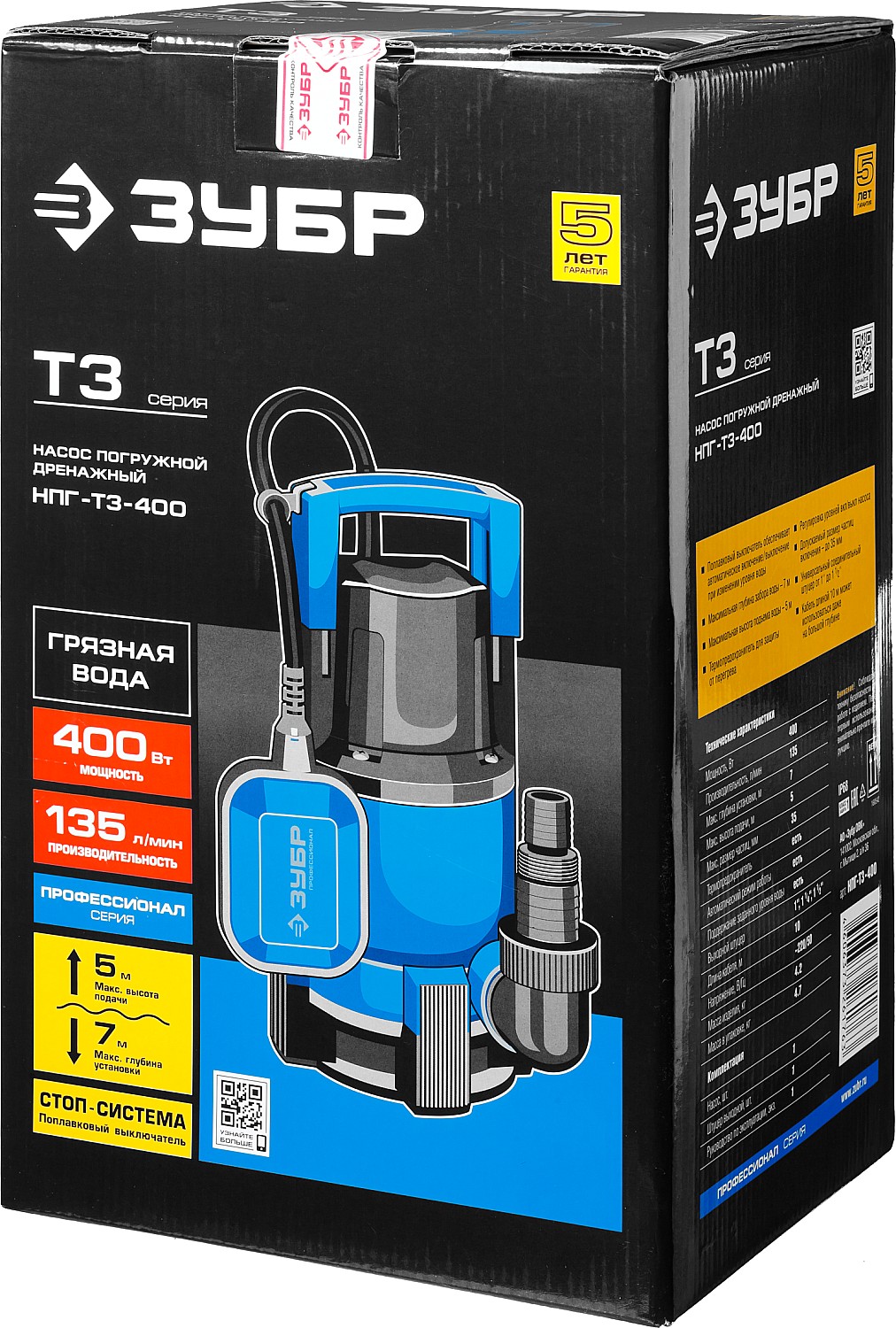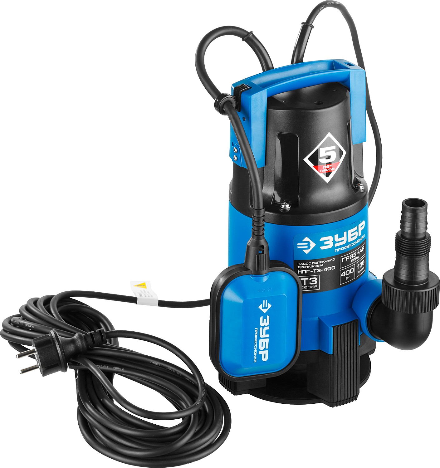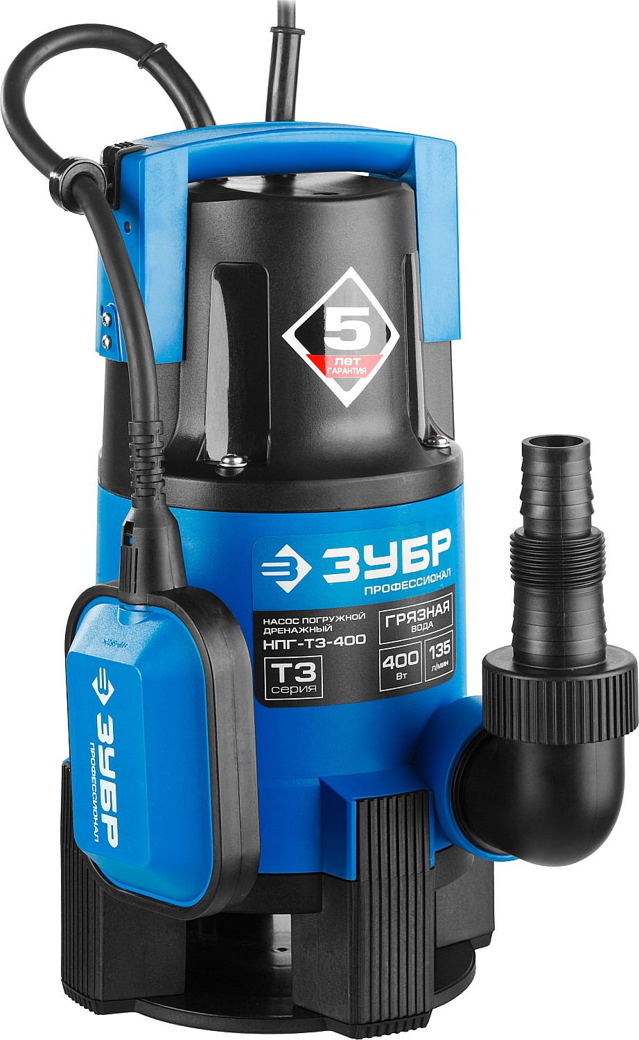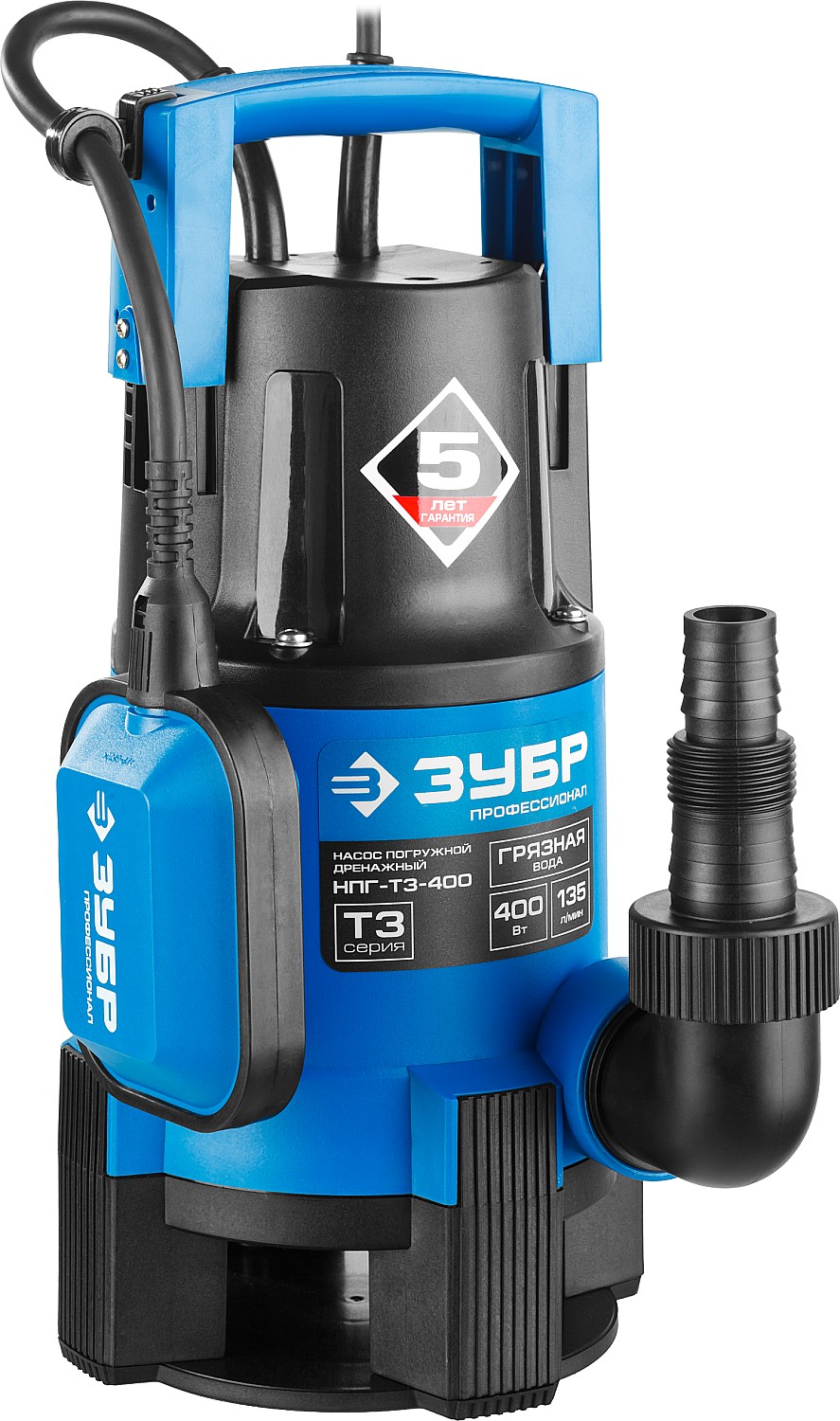 ЗУБР 400 Вт, дренажный насос для грязной воды, Профессионал (НПГ-Т3-400)