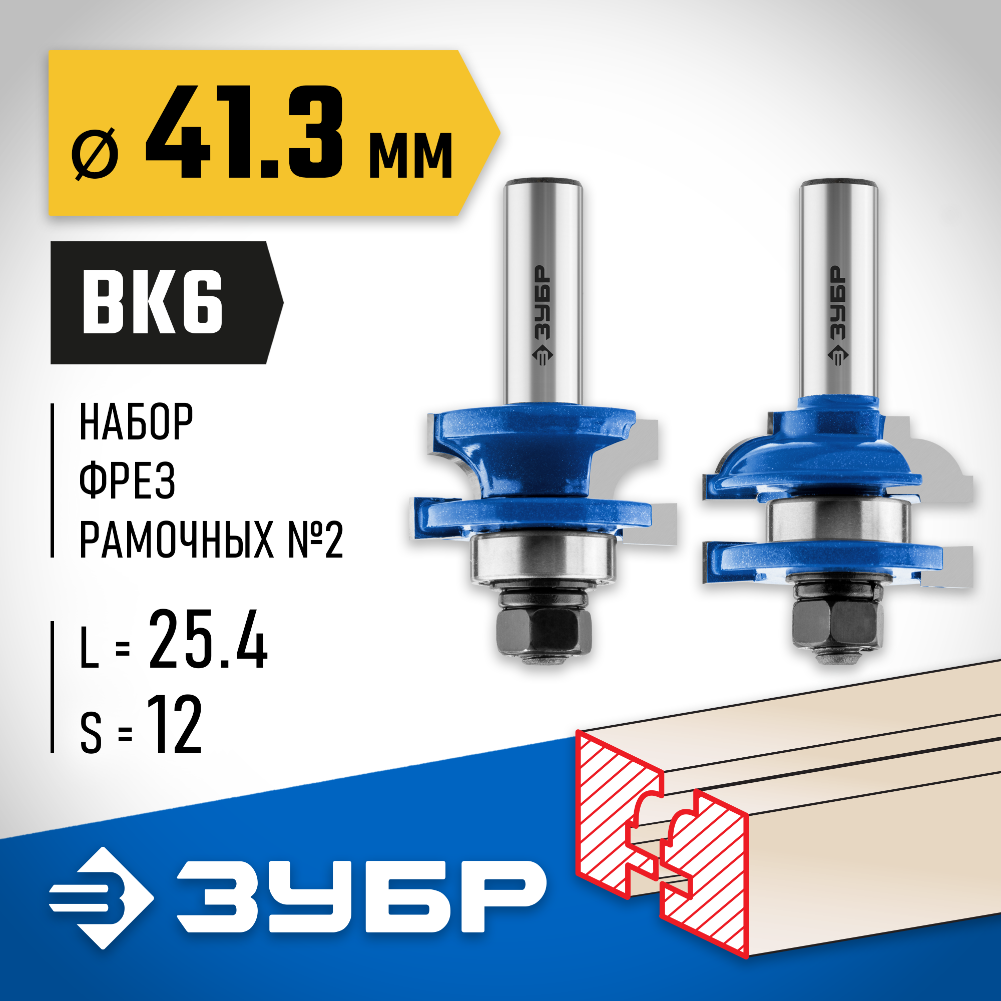 ЗУБР 41 x 23 мм, хвостовик 12 мм, набор фрез рамочных №2, Профессионал (28772-41.3-H2)