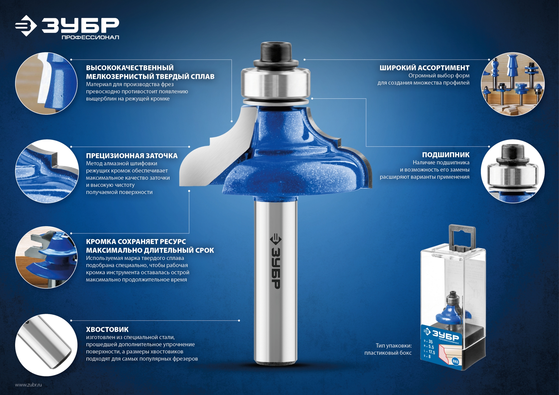 Используется на фрезерных станках и ручных фрезерах при обработке мебели, столярных изделий, предметов интерьера, а также реставрационных работах и внутренней отделке.