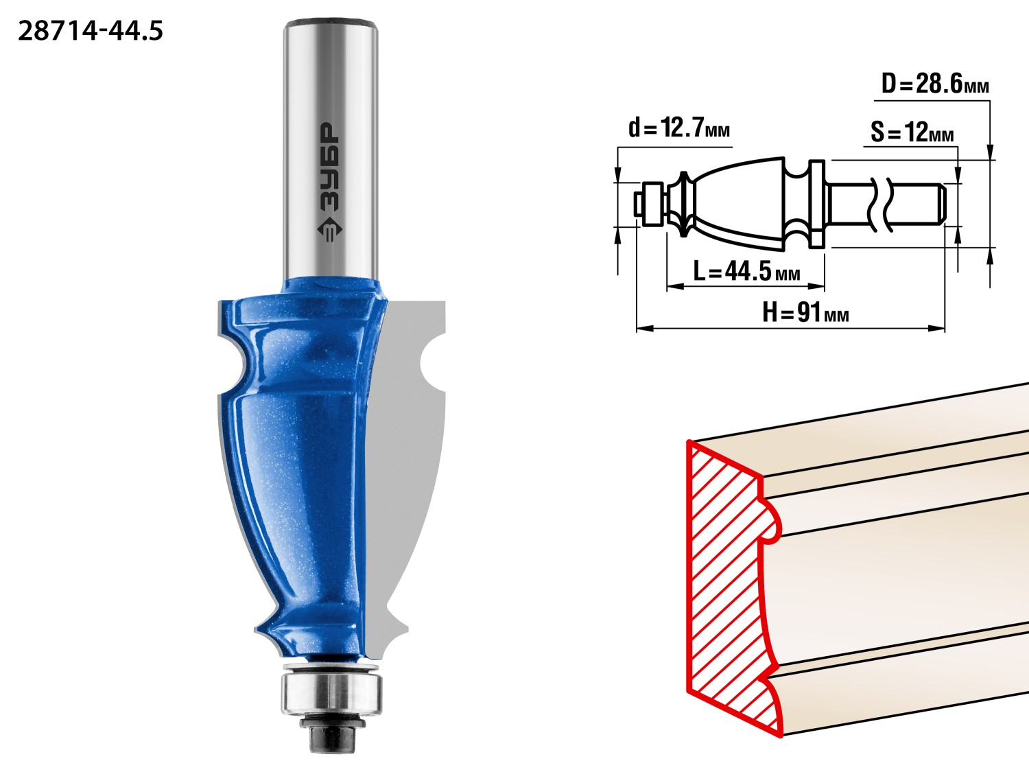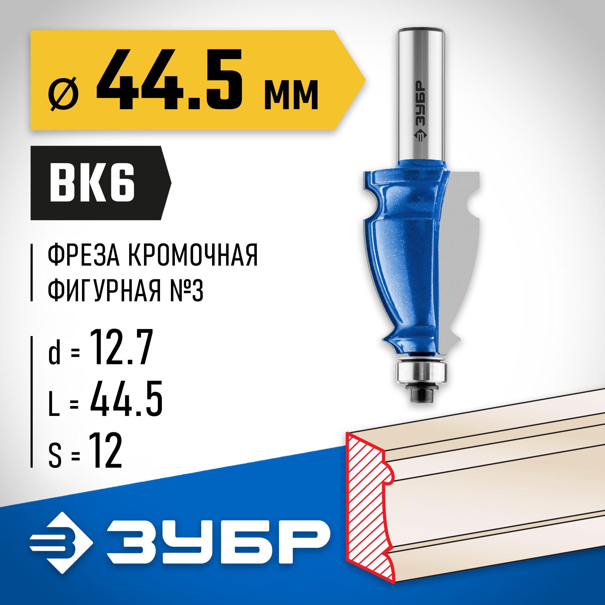 ЗУБР 44.5 x 28 мм, хвостовик 12 мм, фреза кромочная фигурная №3, Профессионал (28714-44.5)