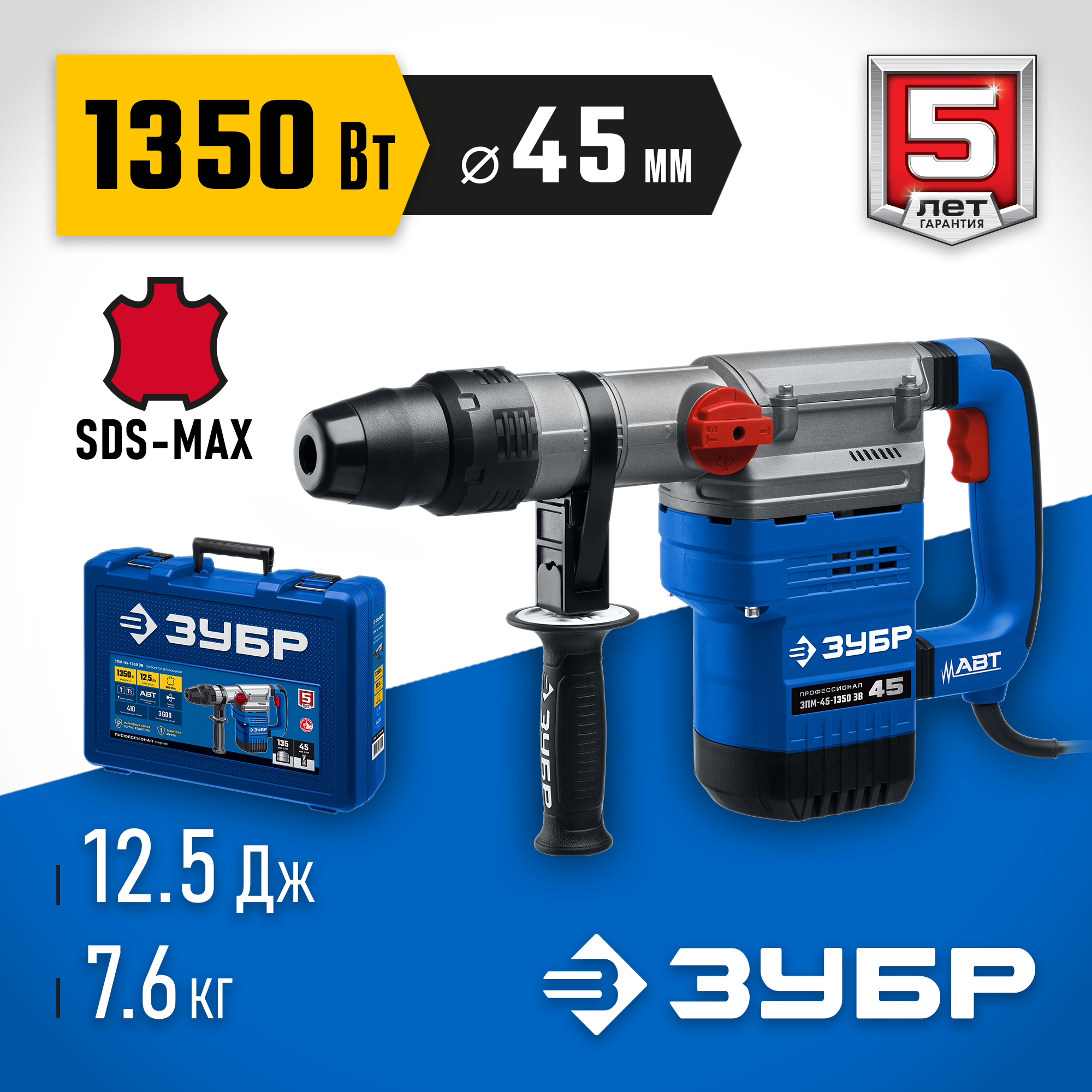 - Удобный вместительный кейс в комплекте для хранения и транспортирования изделия и сменного инструмента