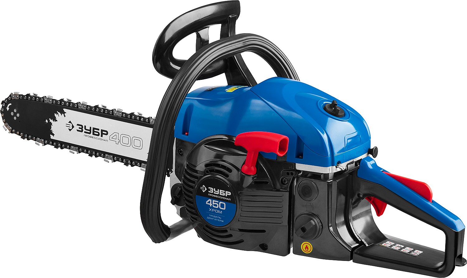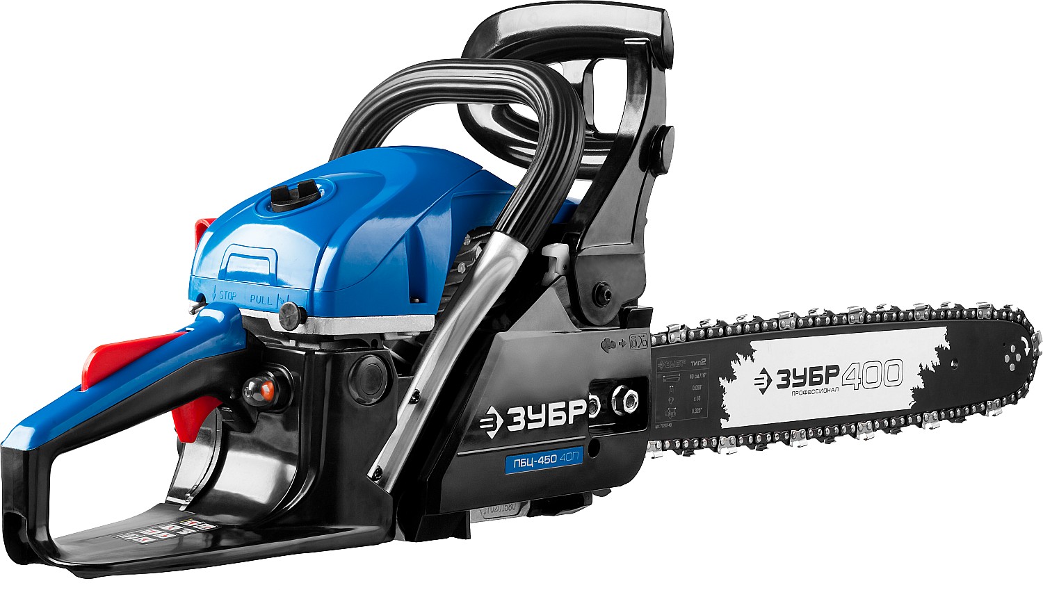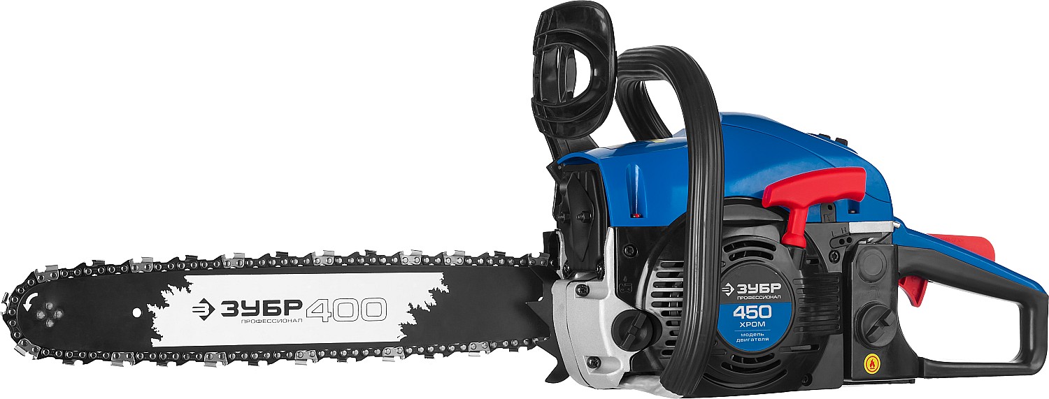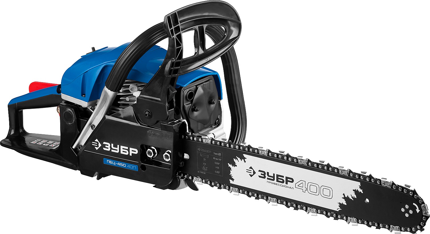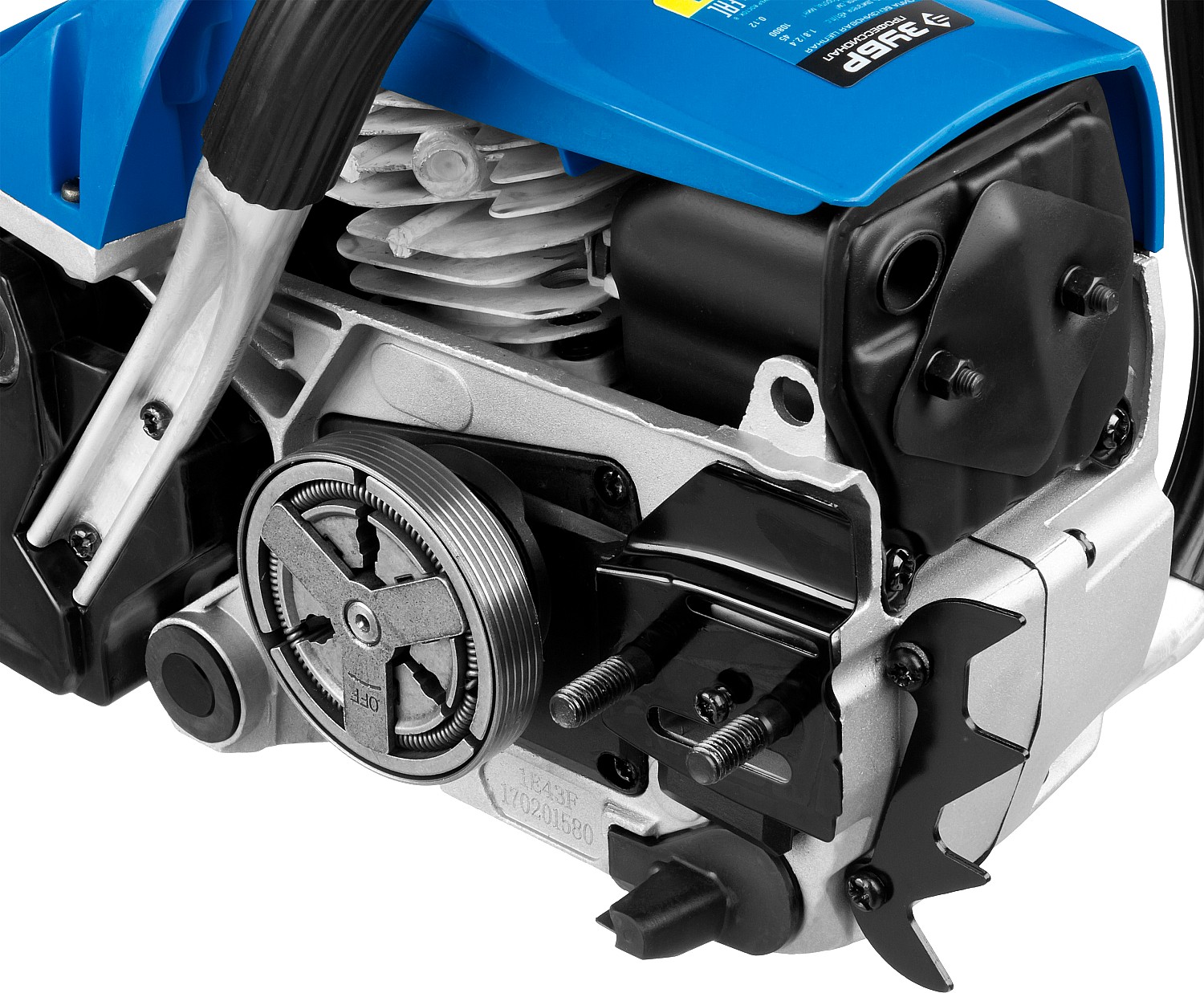 Идеальный вариант для пиления досок, бруса, стволов различных пород дерева на дачном участке. В отличие от электрической, бензиновая пила оснащена более мощным двигателем, безопасна в отношении поражения электрическим током, может работать в любую погоду и в любом месте. Функции легкого запуска, автоматической смазки цепи и эффективная антивибрационная защита делают пилу легкой в обращении и комфортной в работе. Двойной тормоз цепи, приводимый в действие при откидывании защитного щитка или при отпускании клавиши блокировки на рукоятке, а также встроенный цепеуловитель и металлический упор делают пилу безопасной в применении. Большая удельная мощность, высокое качество применяемых материалов и изготовления, обеспечивающие увеличенный ресурс, делают бензиновую пилу ЗУБР Вашим лучшим помощником