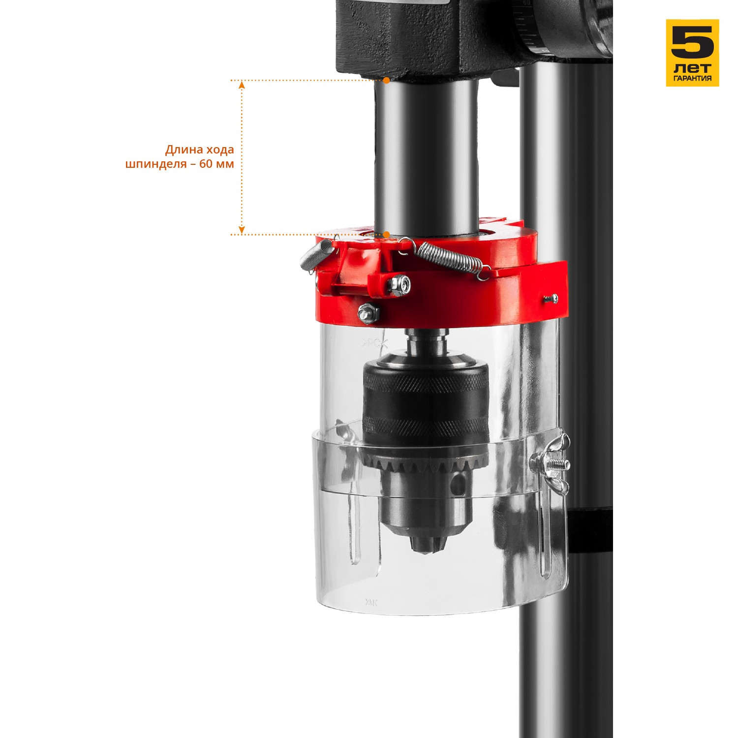 - Прозрачный кожух для защиты оператора от стружки при сверлении
