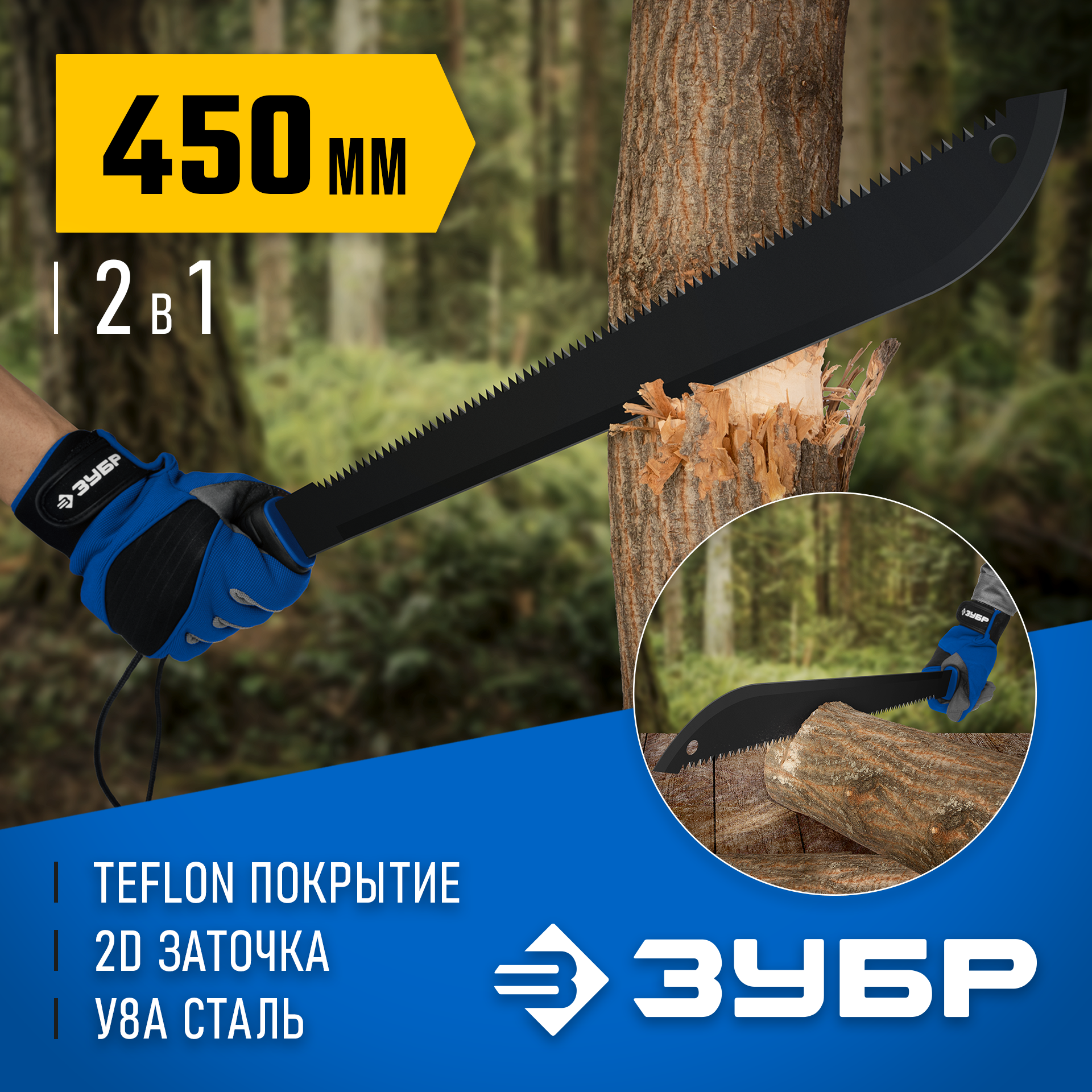 Профессиональный инструмент из закаленной стали У8А c удлиненным лезвием для вырубки зарослей, кустарника, мелких деревьев, опиливания веток.