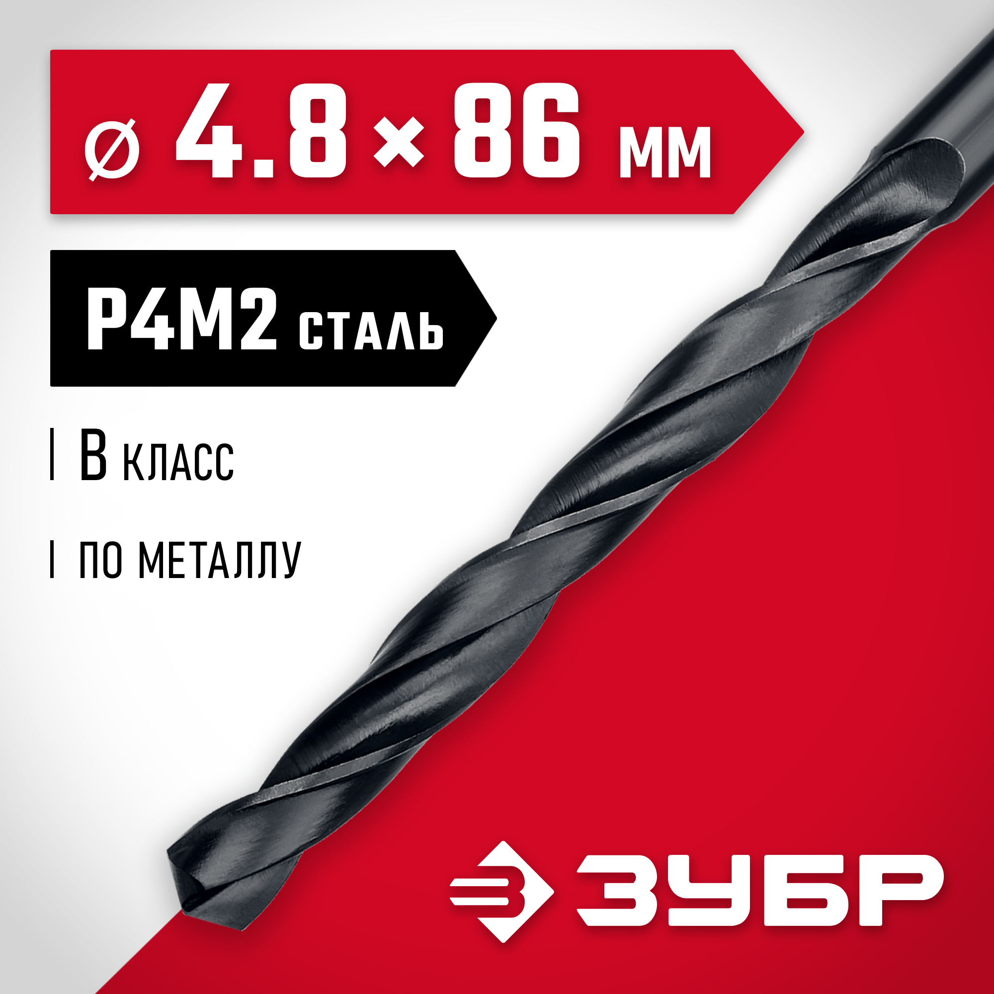 ЗУБР 4.8 х 86 мм, сталь Р4М2, класс В, сверло по металлу (29605-4.8)