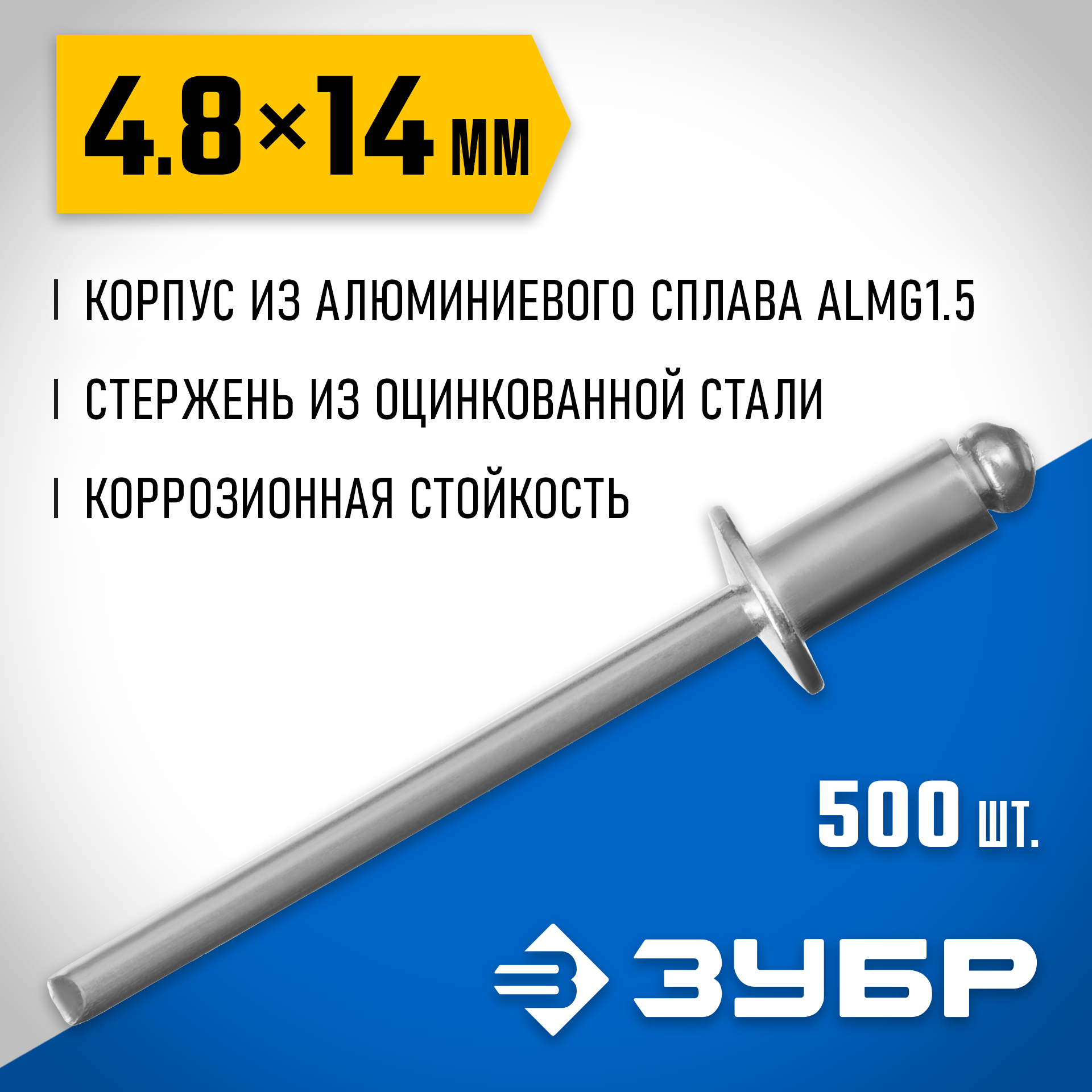 ЗУБР 4.8 x 14 мм, 500 шт, алюминиевые заклепки, Профессионал (31310-48-14)