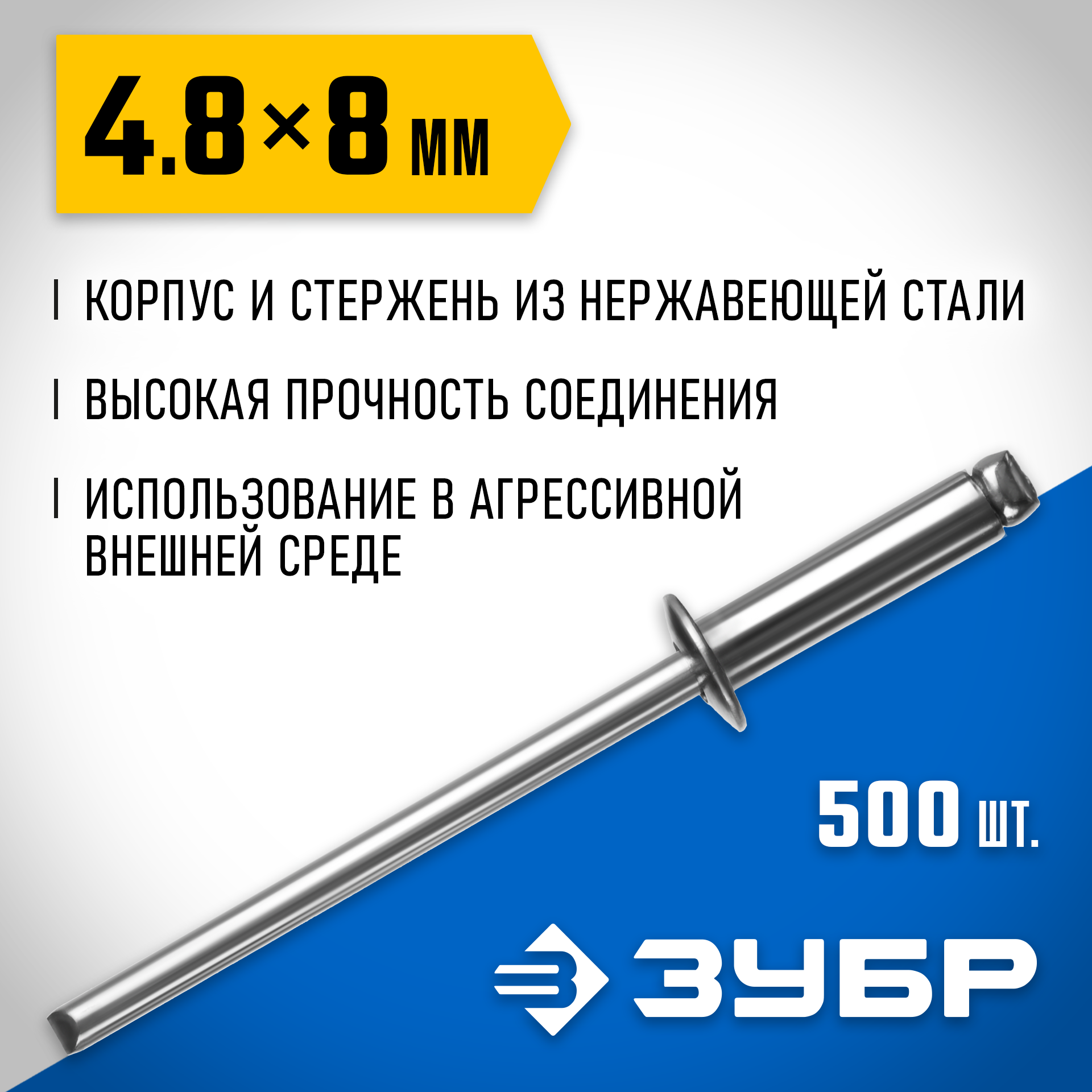 - Корпус и стержень заклепки изготовлены из нержавеющей стали А2 для использования в условиях агрессивной внешней среды: повышенная влажность, осадки, высокие температуры и т.п.