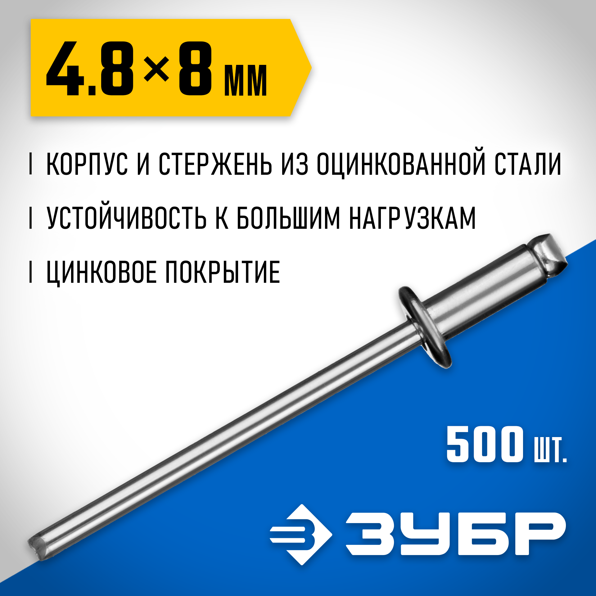 ЗУБР 4.8 x 8 мм, 500 шт, стальные заклепки, Профессионал (31312-48-08)