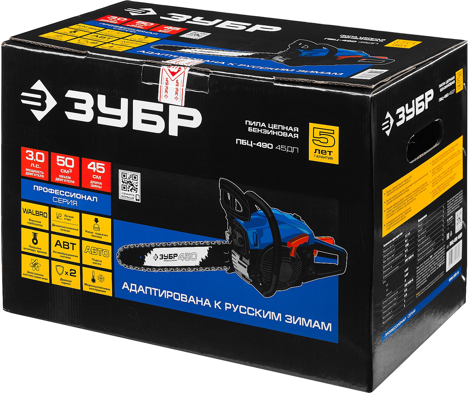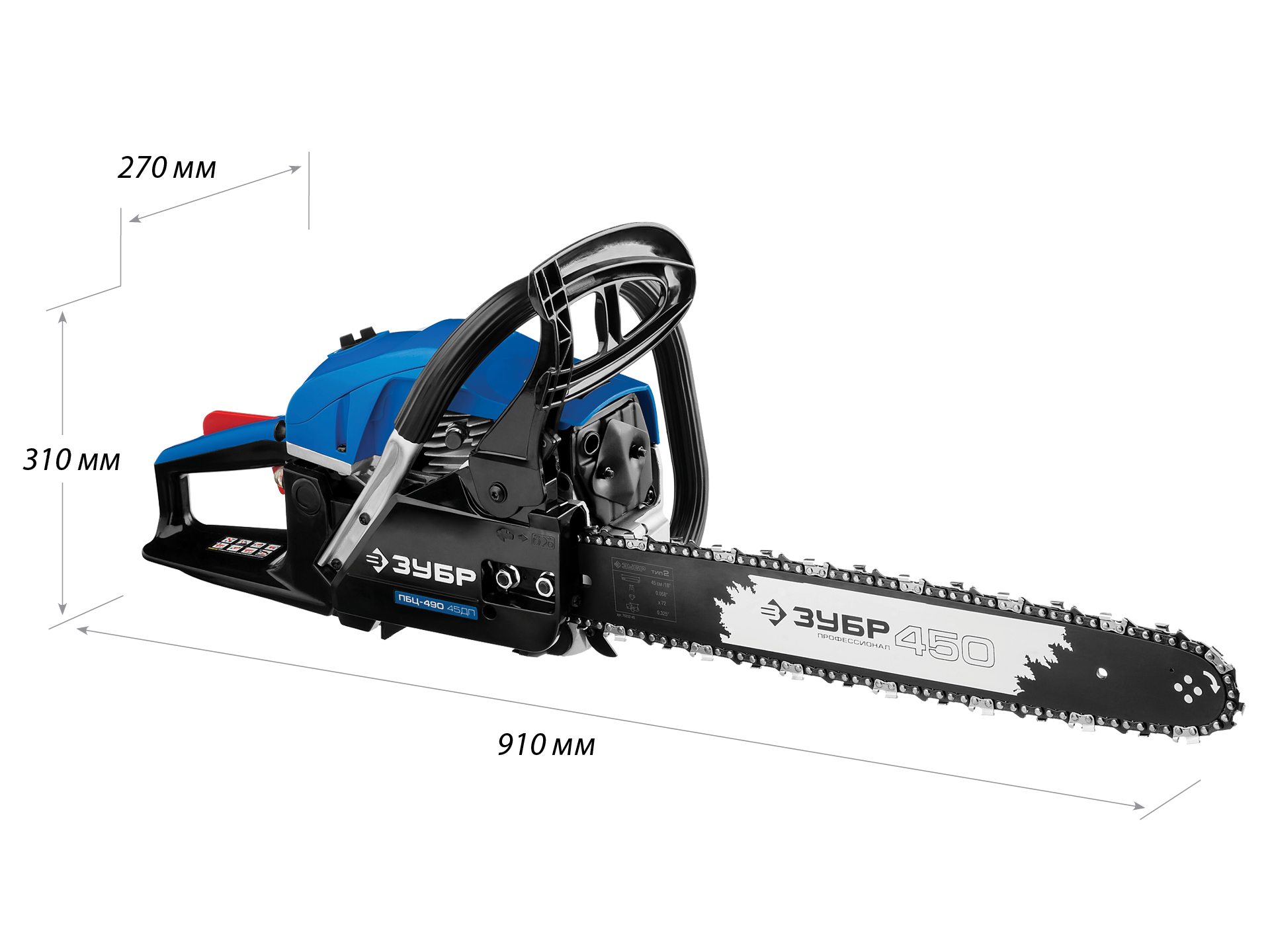 Бензопила цепная бензиновая, ЗУБР 49 см3, 45 см, Профессионал (ПБЦ-490 45ДП)