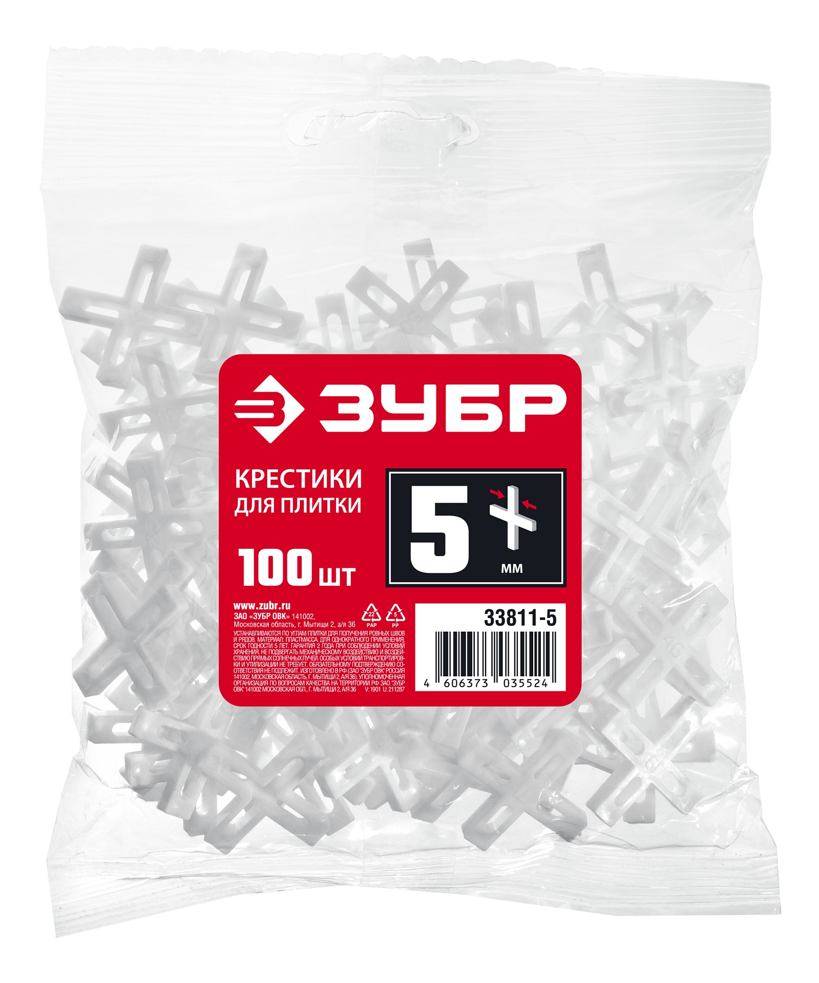 ЗУБР 5 мм, 100 шт, крестики для плитки (33811-5)