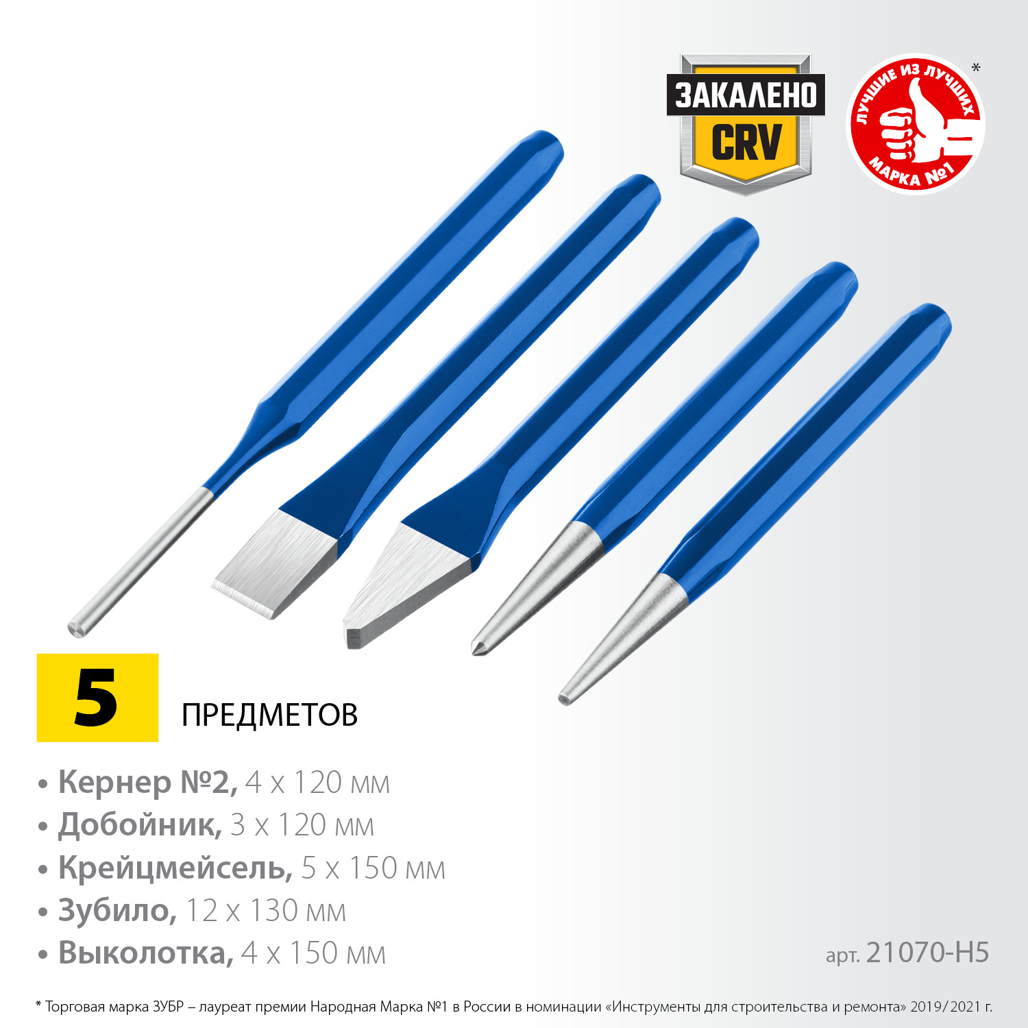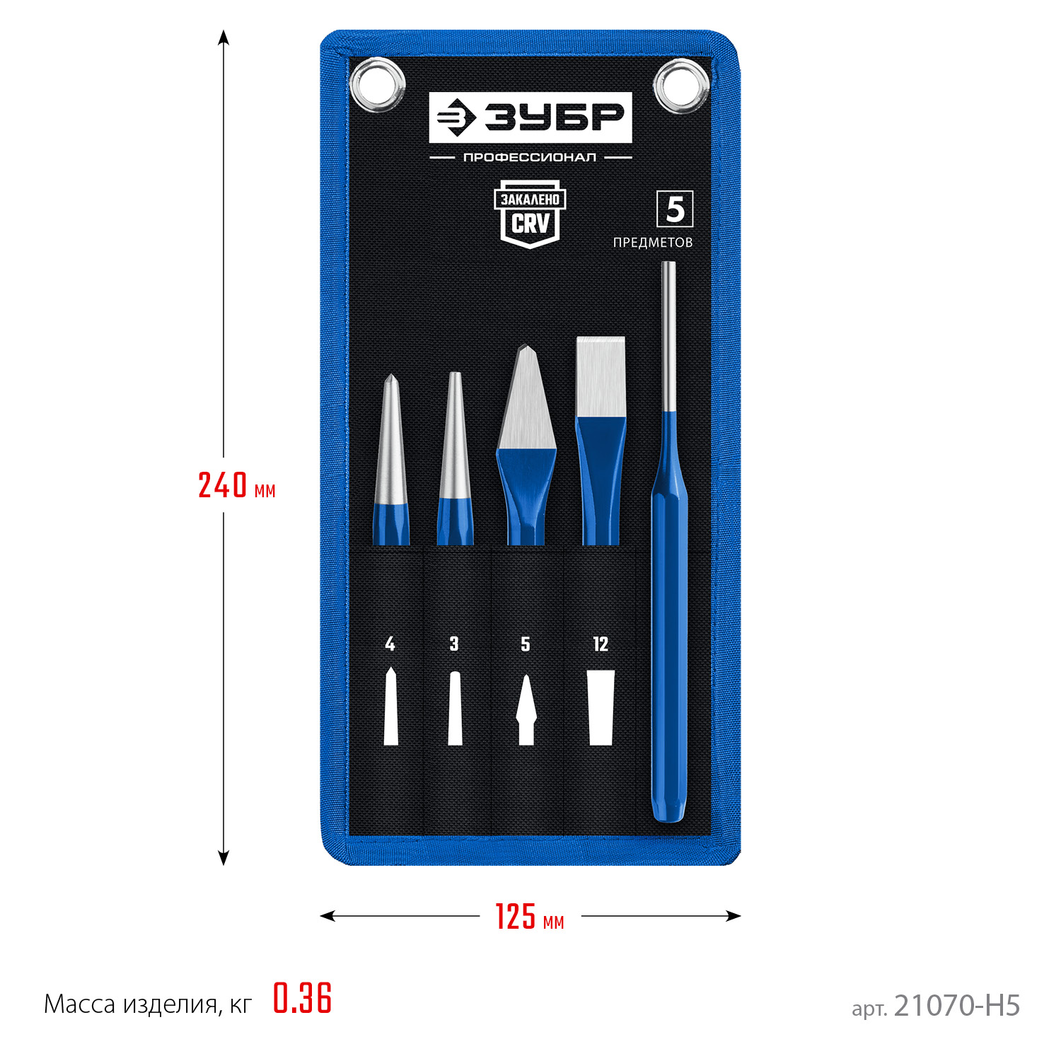 - Набор высококачественных зубил и кернеров для различных целей..