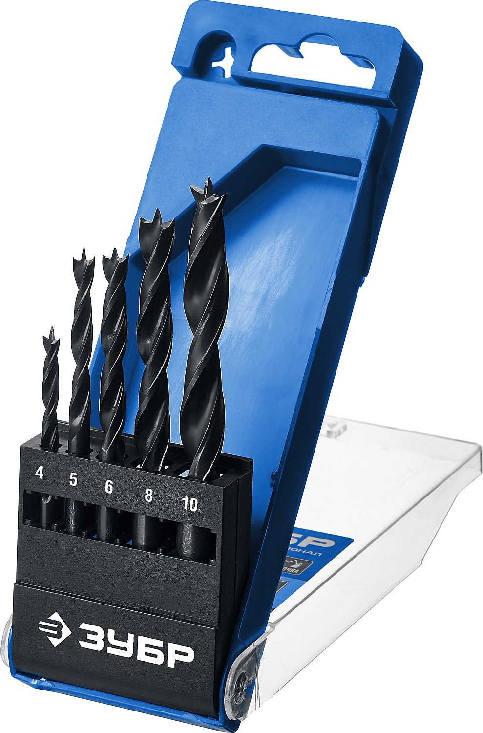 ЗУБР 5 шт: (4-5-6-8-10 мм), М-образная заточка, набор сверл спиральных по дереву, Профессионал (29421-H5)