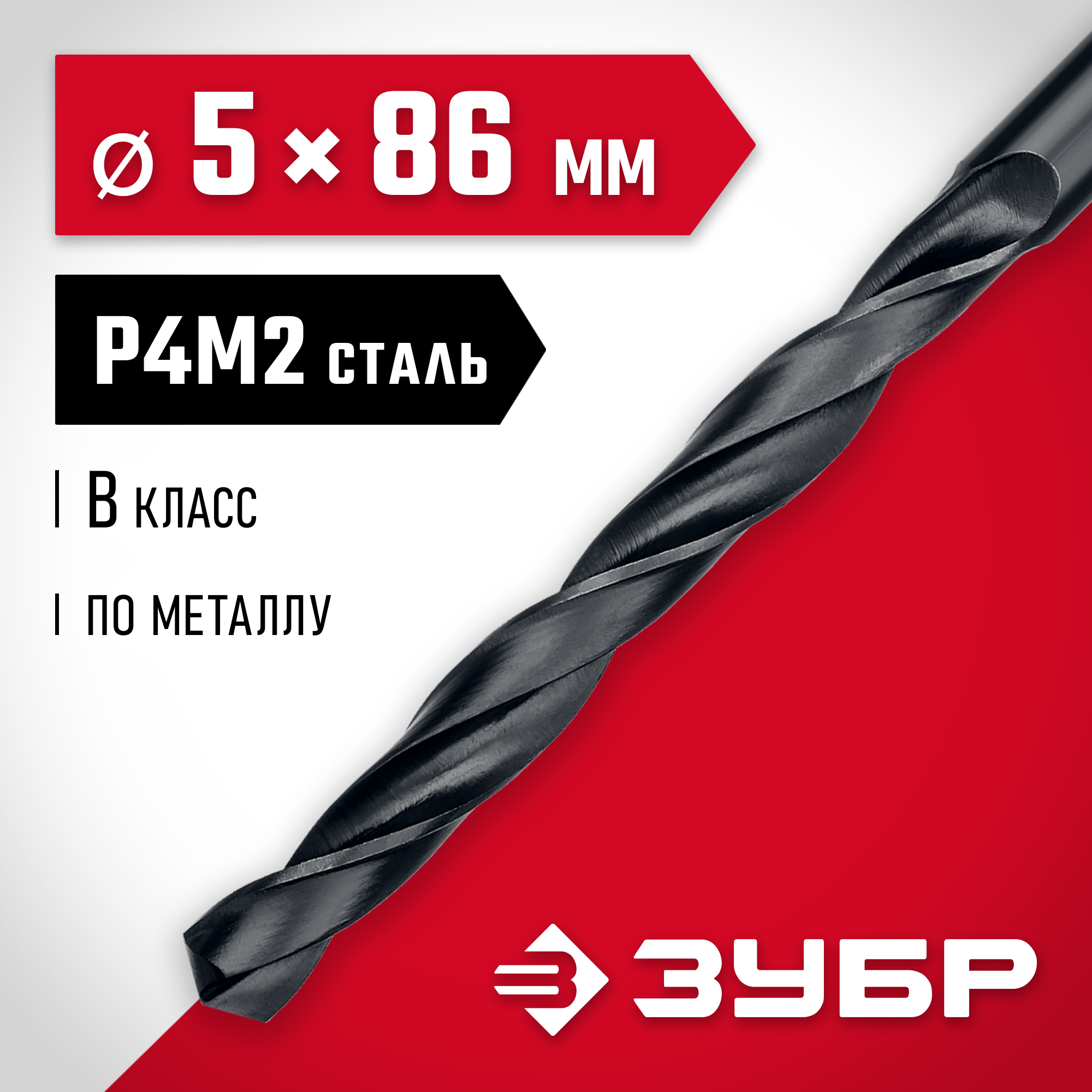 ЗУБР 5.0 х 86 мм, сталь Р4М2, класс В, сверло по металлу (29605-5)