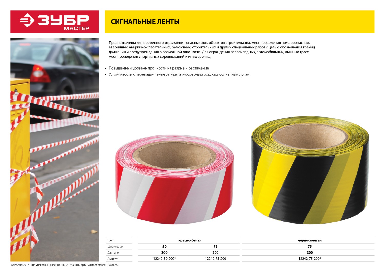Сигнальная лента изготовлена из полиэтилена высокого давления с нанесенным цветографичеким изображением. Обладает стойкостью к воздействию воды, высокой прочностью на растяжение и на разрыв.