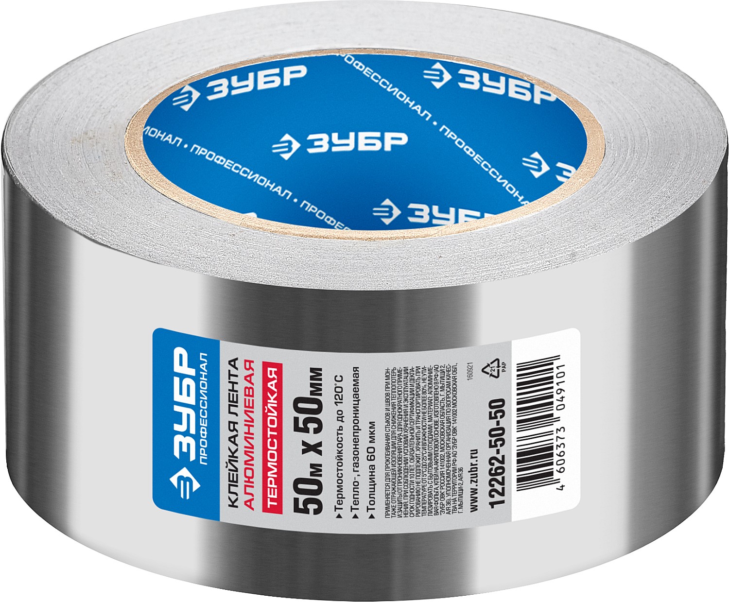 ЗУБР 50 мм, 50 м, 60 гр/м2, самоклеящаяся алюминиевая лента, Профессионал (12262-50-50)