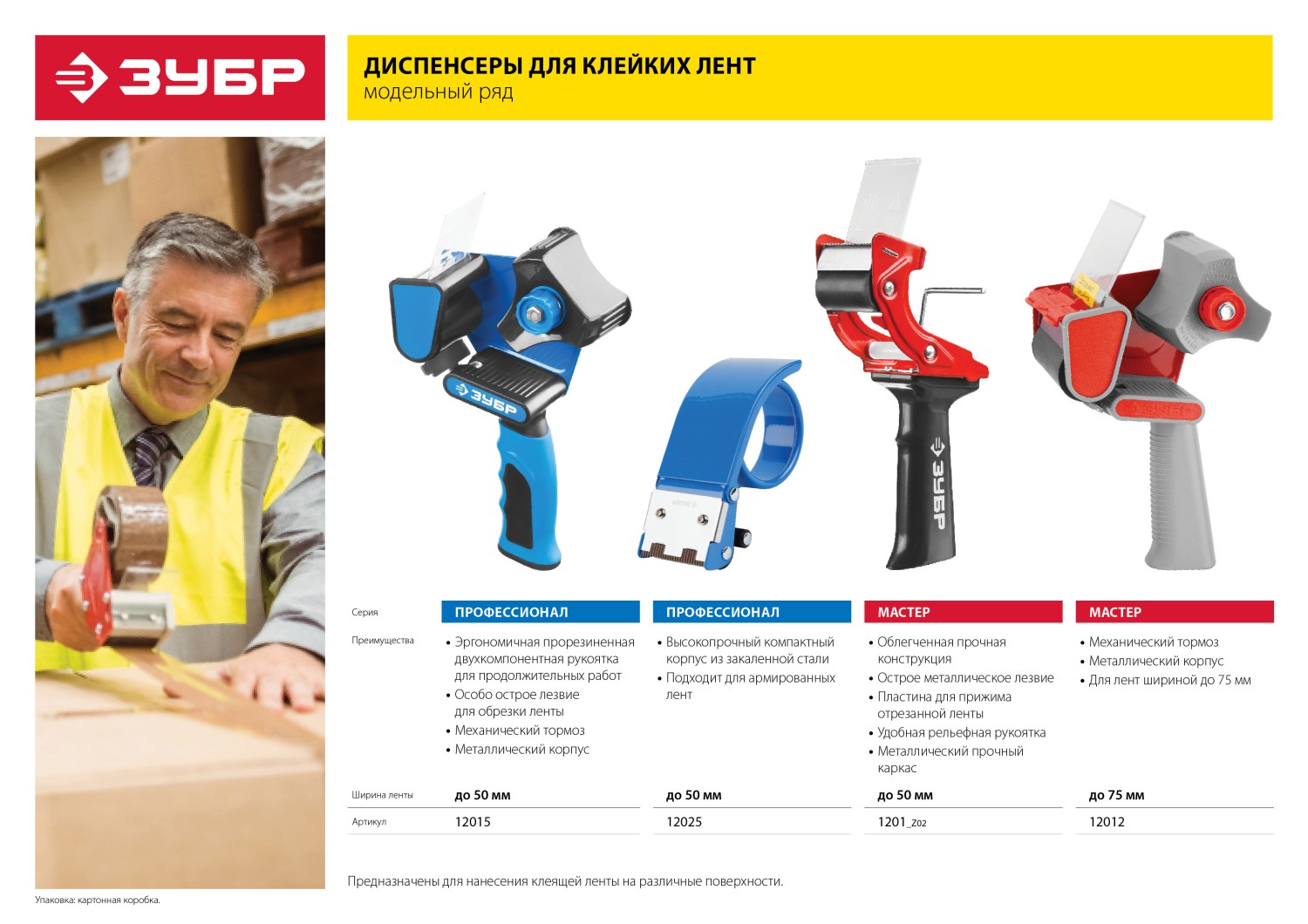 Диспенсер предназначен для нанесения клеящей ленты на различные поверхности
