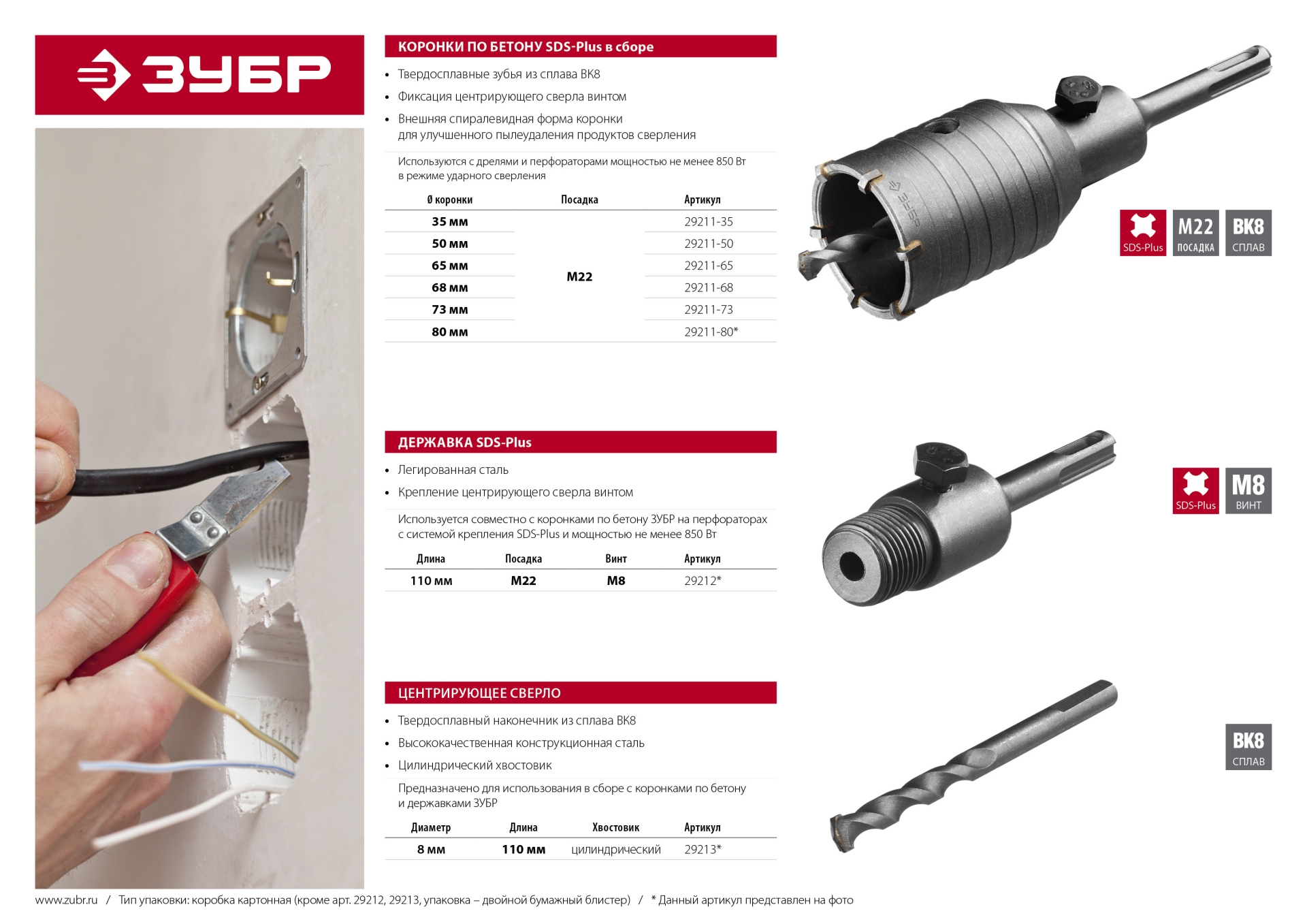 ЗУБР 50 мм, SDS - Plus, 6Т, коронка по бетону с оснасткой (29211-50)