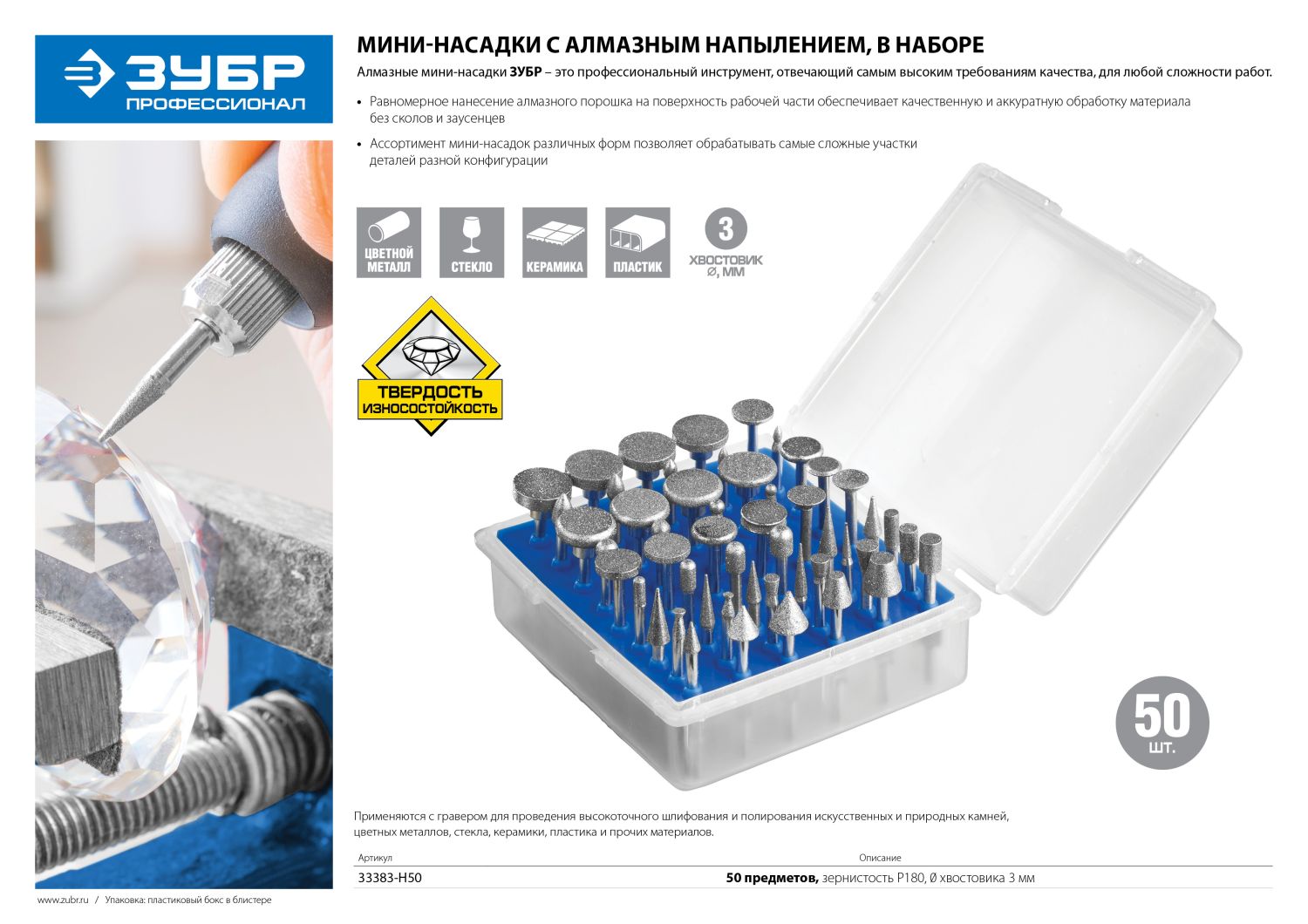 Алмазные мини-насадки ЗУБР - профессиональный инструмент для обработки и шлифовки различных материалов.