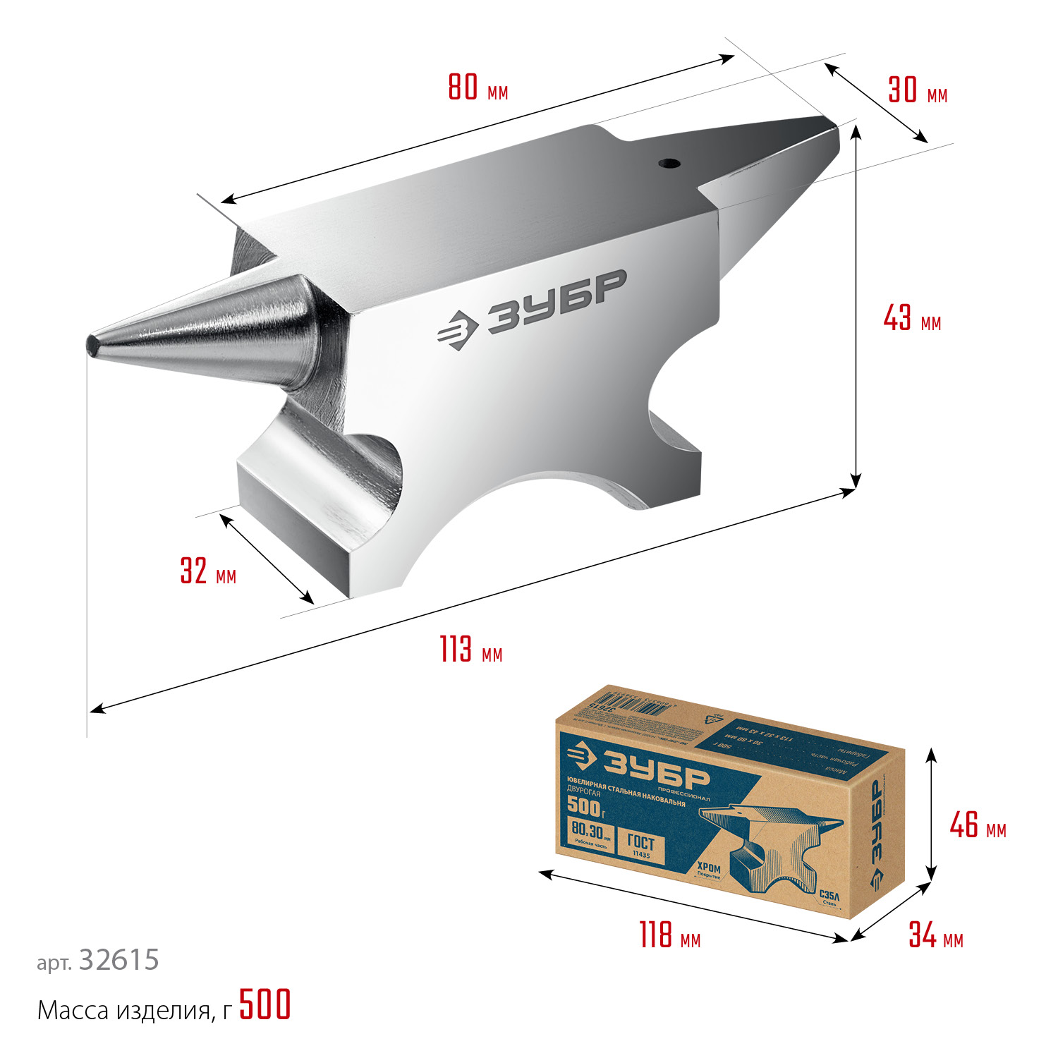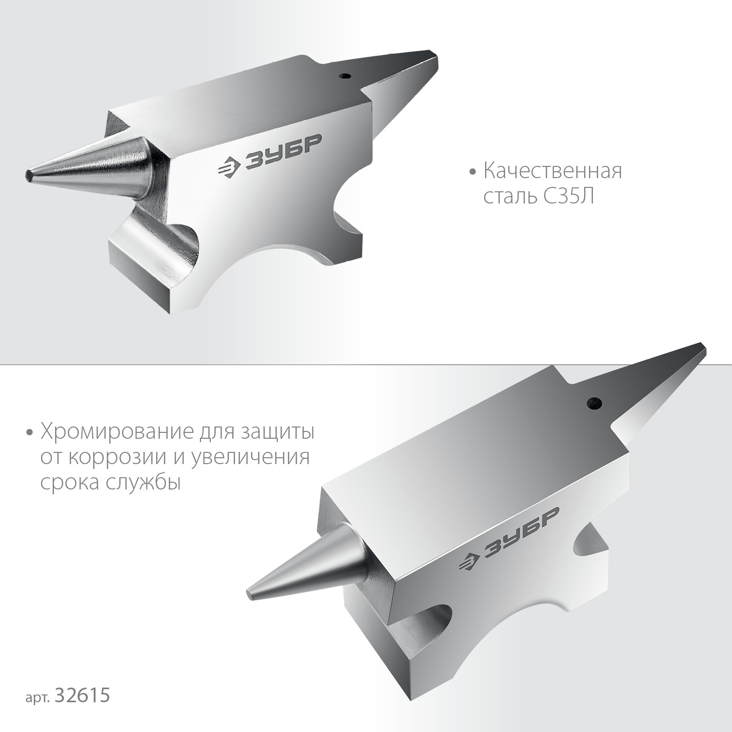 Стальная двурогая наковальня ЗУБР (шперак) для ювелирных работ и работы с проволокой . Антикоррозионное покрытие хромированием Сталь С35Л. Поверхность закалена на глубину 0,8-1,5 мм. Твердость рабочей части HB 340-477. Отверстия Ø3-4 мм для установки инструмента. Увеличенный срок службы. Для точных работ. Серия Профессионал У настольной версии предусмотрены отверстия для жеской фиксации на столе.