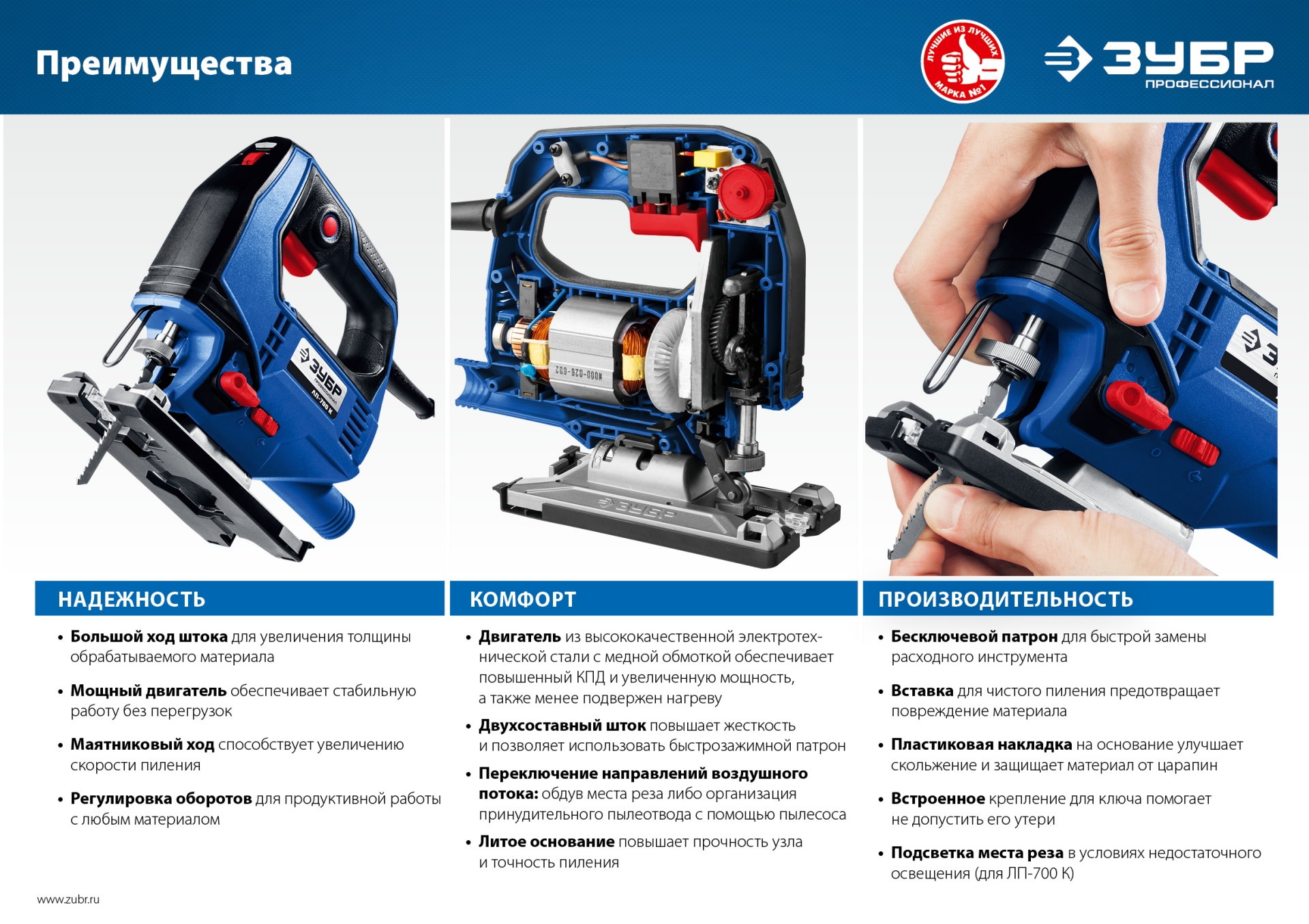 - 3-позиционный маятниковый ход для обеспечения как быстрого, так и чистого пиления
