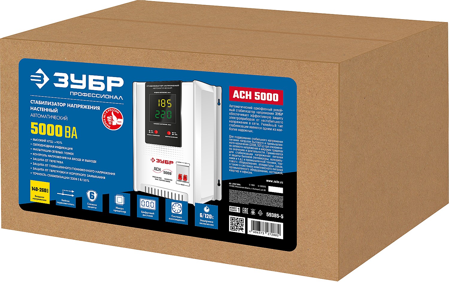 Стабилизатор напряжения ЗУБР предназначен для точного и быстрого выравнивания сетевого напряжения для защиты бытовой техники и оборудования. Устройство обеспечивает эффективную защиту электроприборов от нестабильного по значению напряжения в сети. Релейный тип стабилизации является одним из наиболее надежных. Светодиодная индикация и цифровой дисплей позволяют контролировать состояние устройства и величину выходного напряжения.