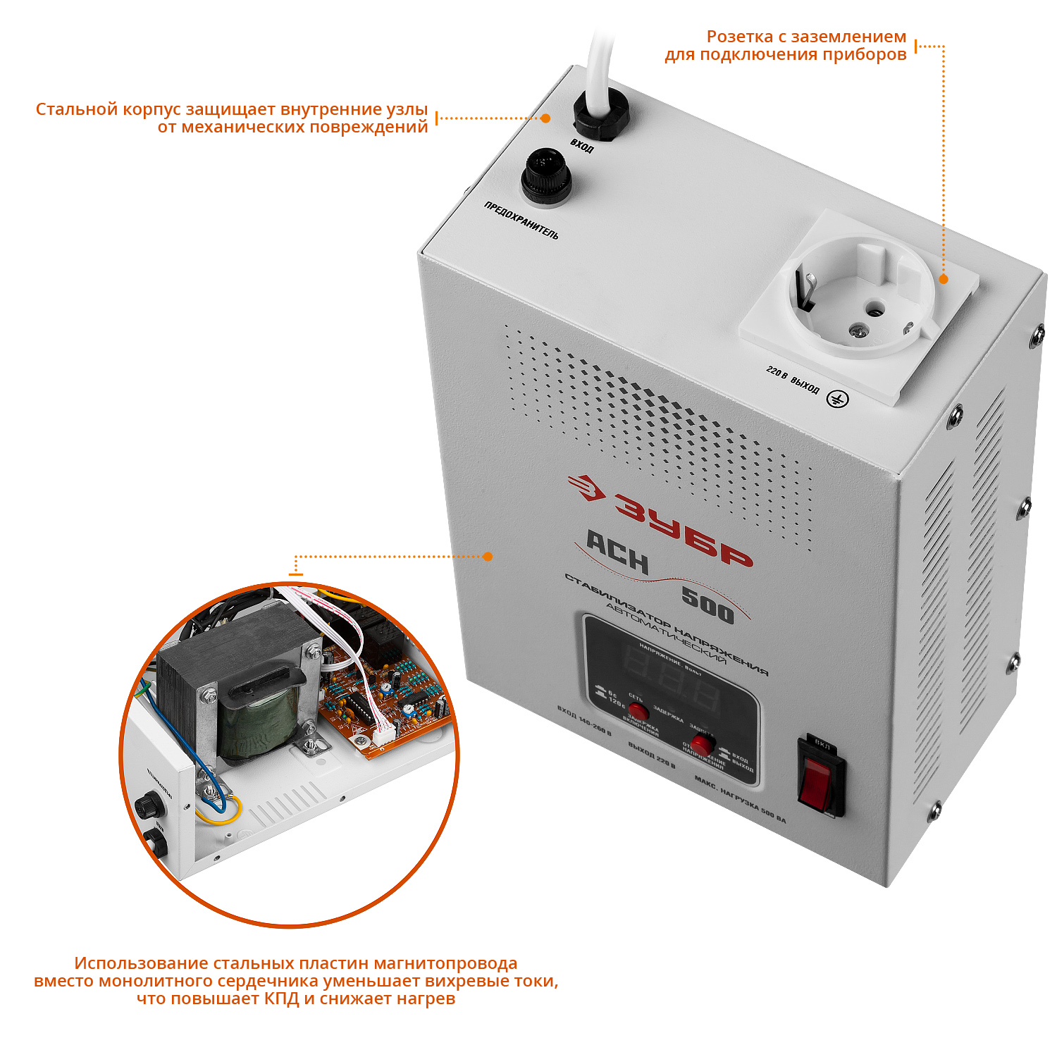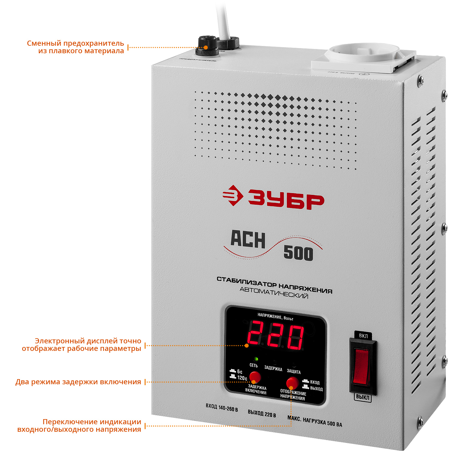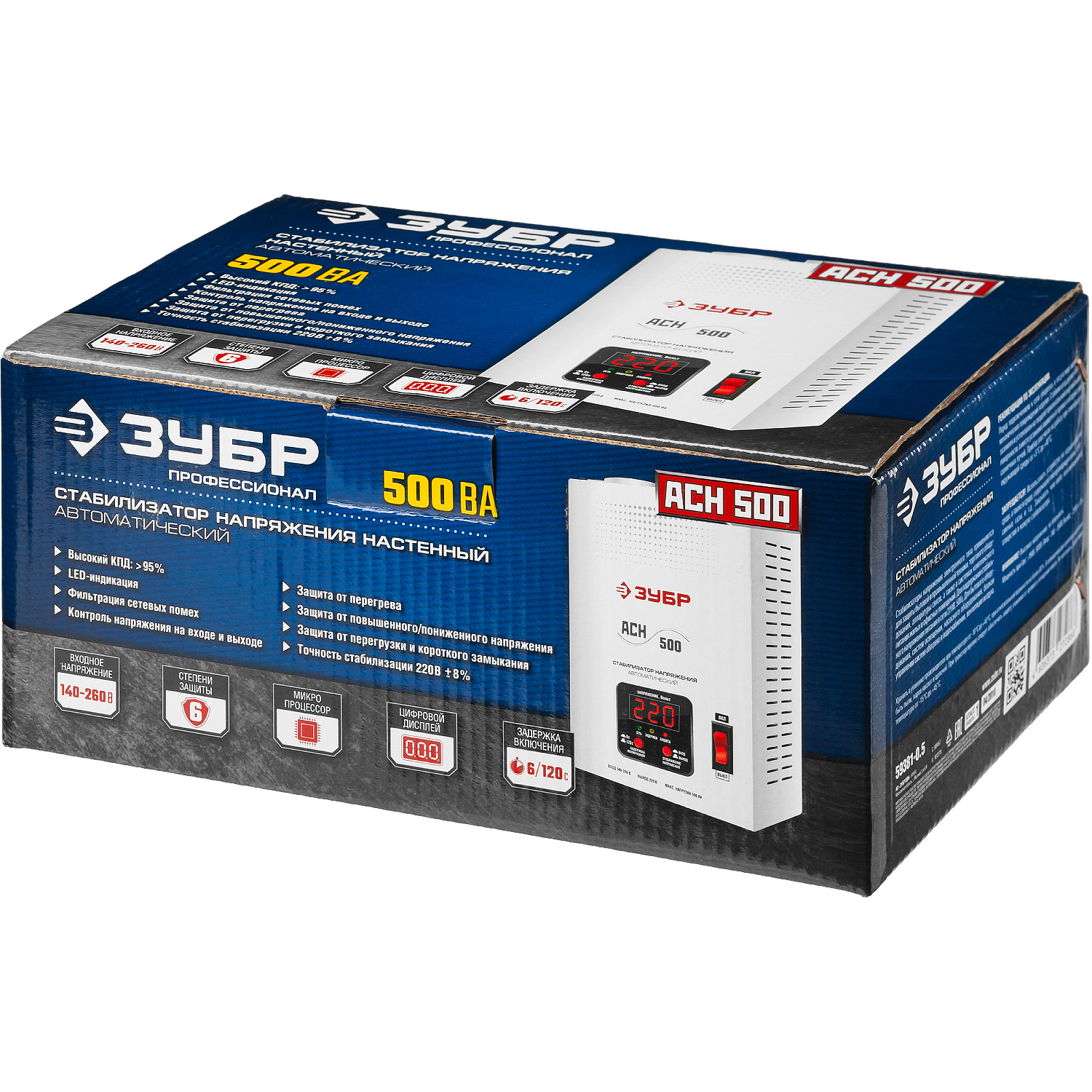 Стабилизатор напряжения ЗУБР предназначен для точного и быстрого выравнивания сетевого напряжения для защиты бытовой техники и оборудования. Устройство обеспечивает эффективную защиту электроприборов от нестабильного по значению напряжения в сети. Релейный тип стабилизации является одним из наиболее надежных. Светодиодная индикация и цифровой дисплей позволяют контролировать состояние устройства и величину выходного напряжения.