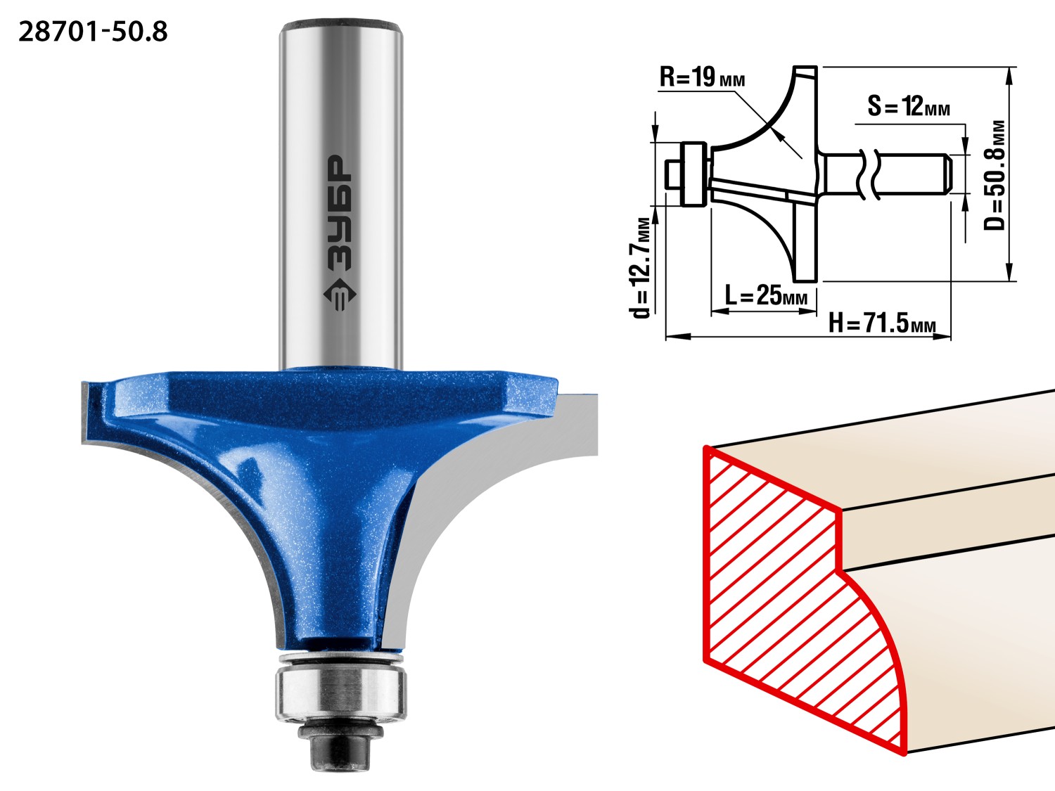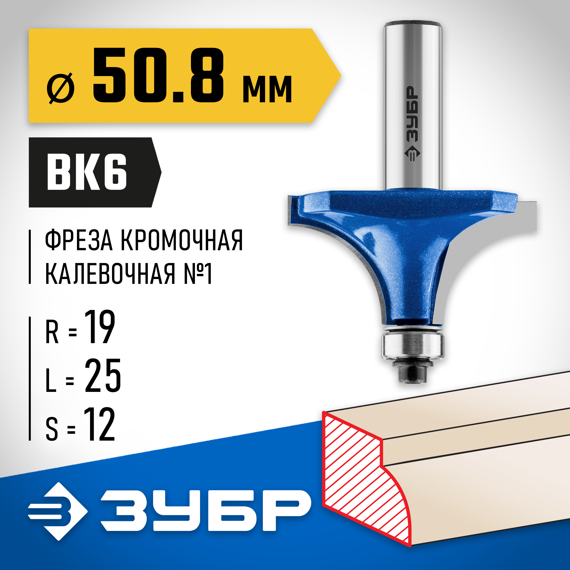 ЗУБР 50.8 x 25 мм, радиус 19 мм, фреза кромочная калевочная №1, Профессионал (28701-50.8)