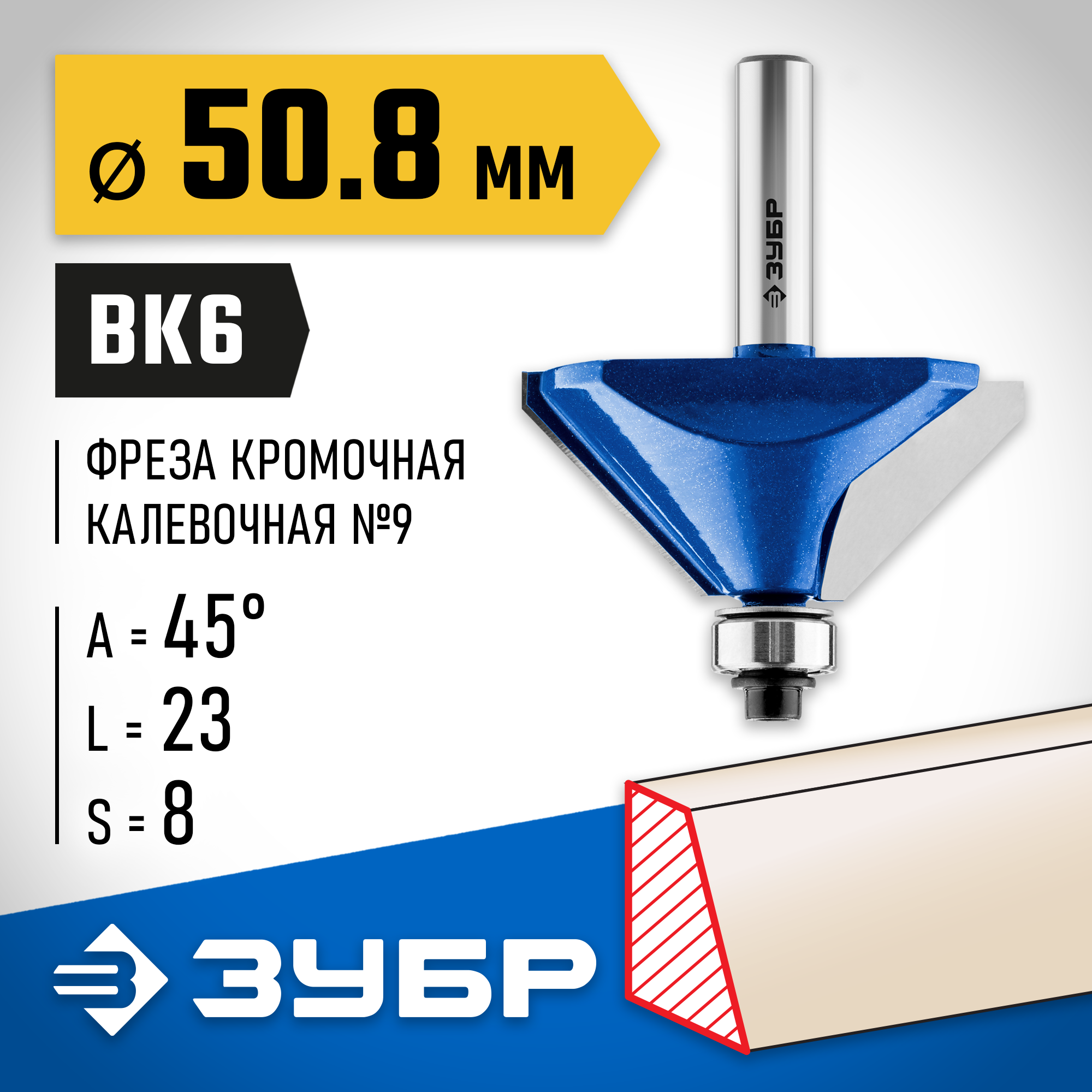 Фреза отлично подходит для изготовления фаски с заданным углом на кромках деталей при обработке столешниц, полок, шкафов и прочих работ с разнообразными видами древесины