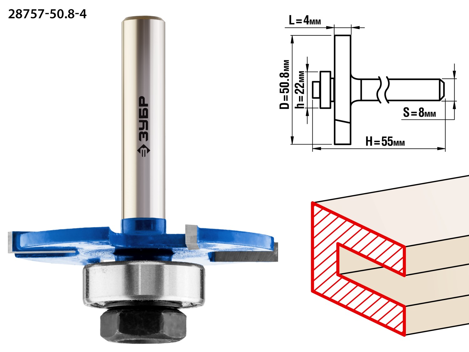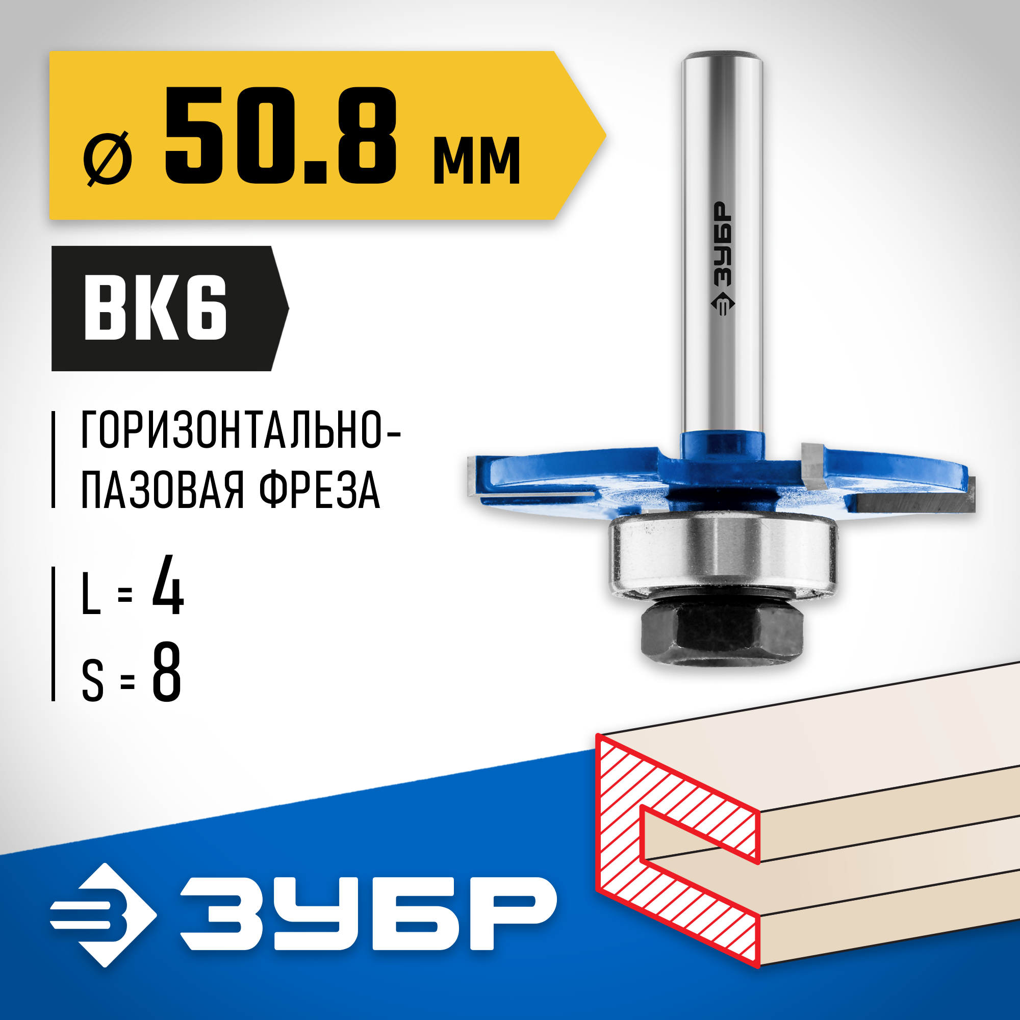 ЗУБР 50.8 x 4 мм, хвостовик 8 мм, фреза горизонтально-пазовая, Профессионал (28757-50.8-4)
