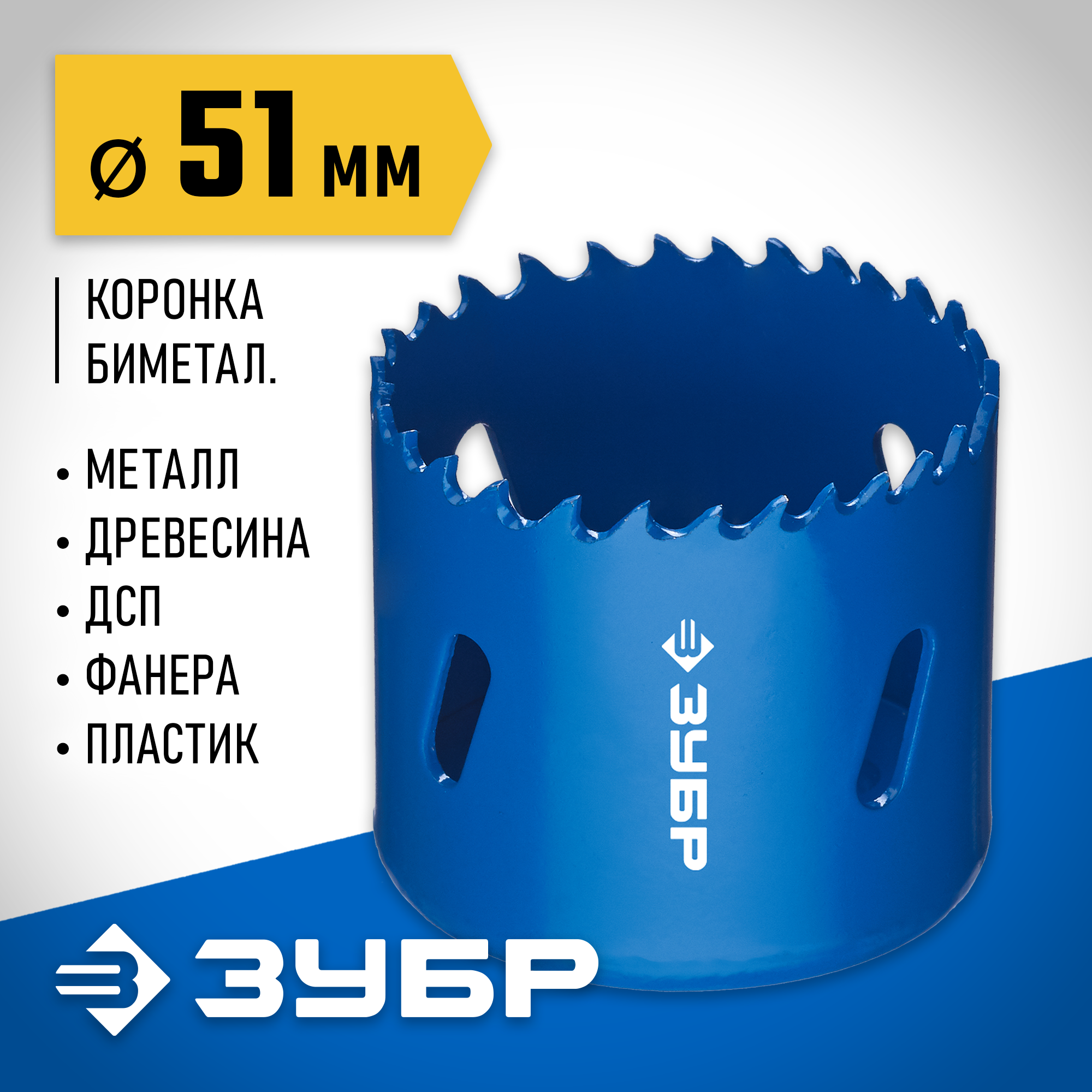 ЗУБР 51 мм, сталь Р6М5, биметаллическая коронка (29531-051)