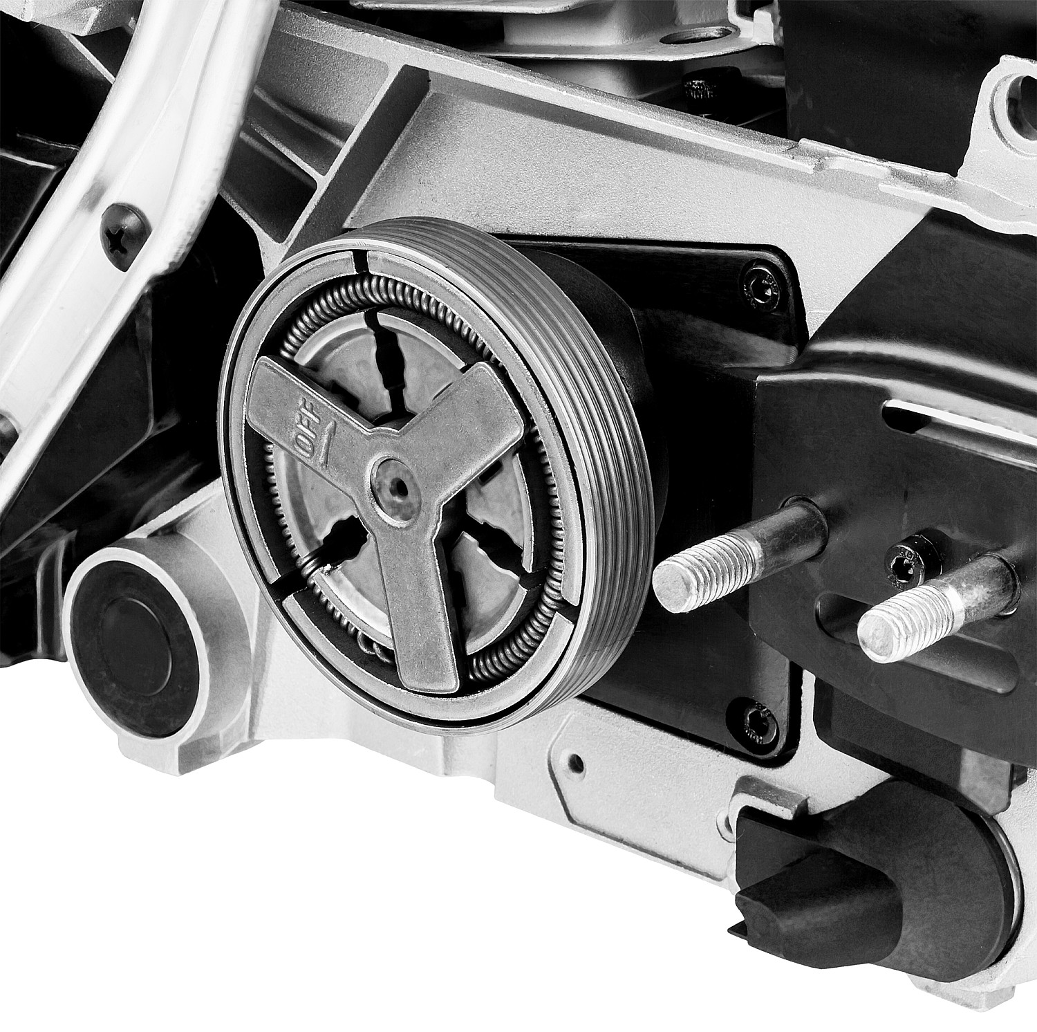 - Тормоз мгновенного действия обеспечивает высокую безопасность работ, мгновенно останавливая пильную цепь в случае опасности