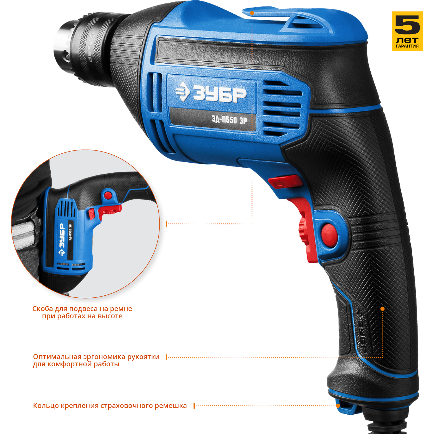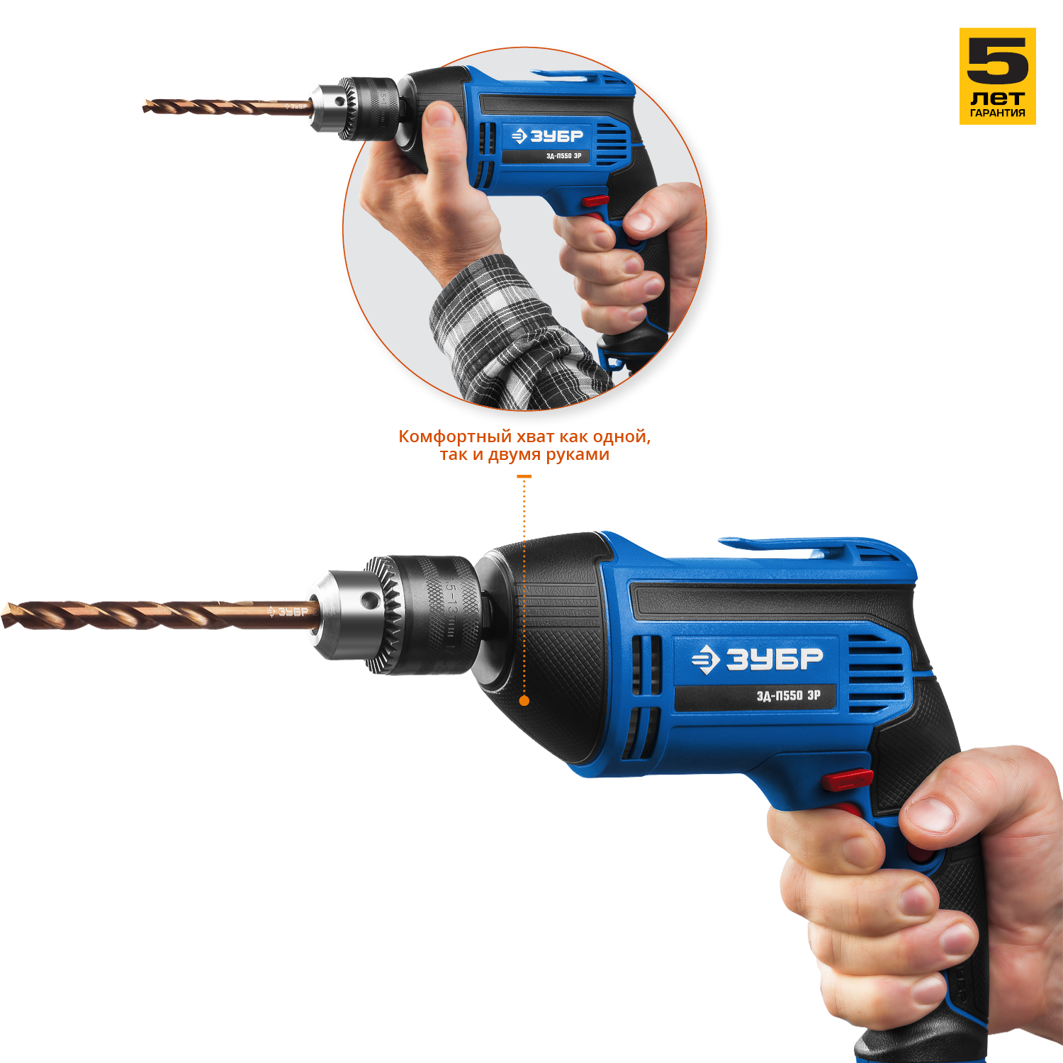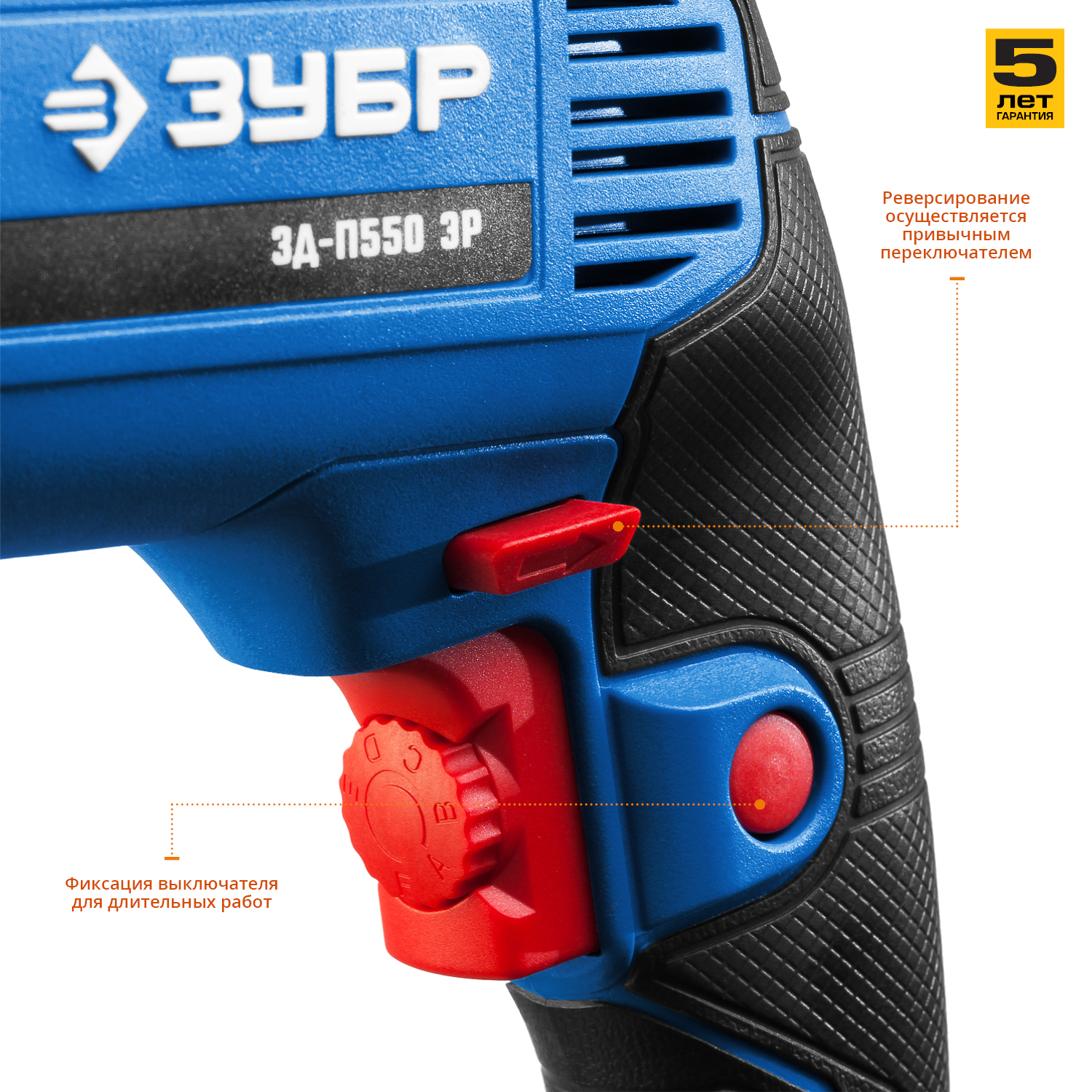 - Надежный хват изделия благодаря прорезиненным рукоятке и передней части корпуса