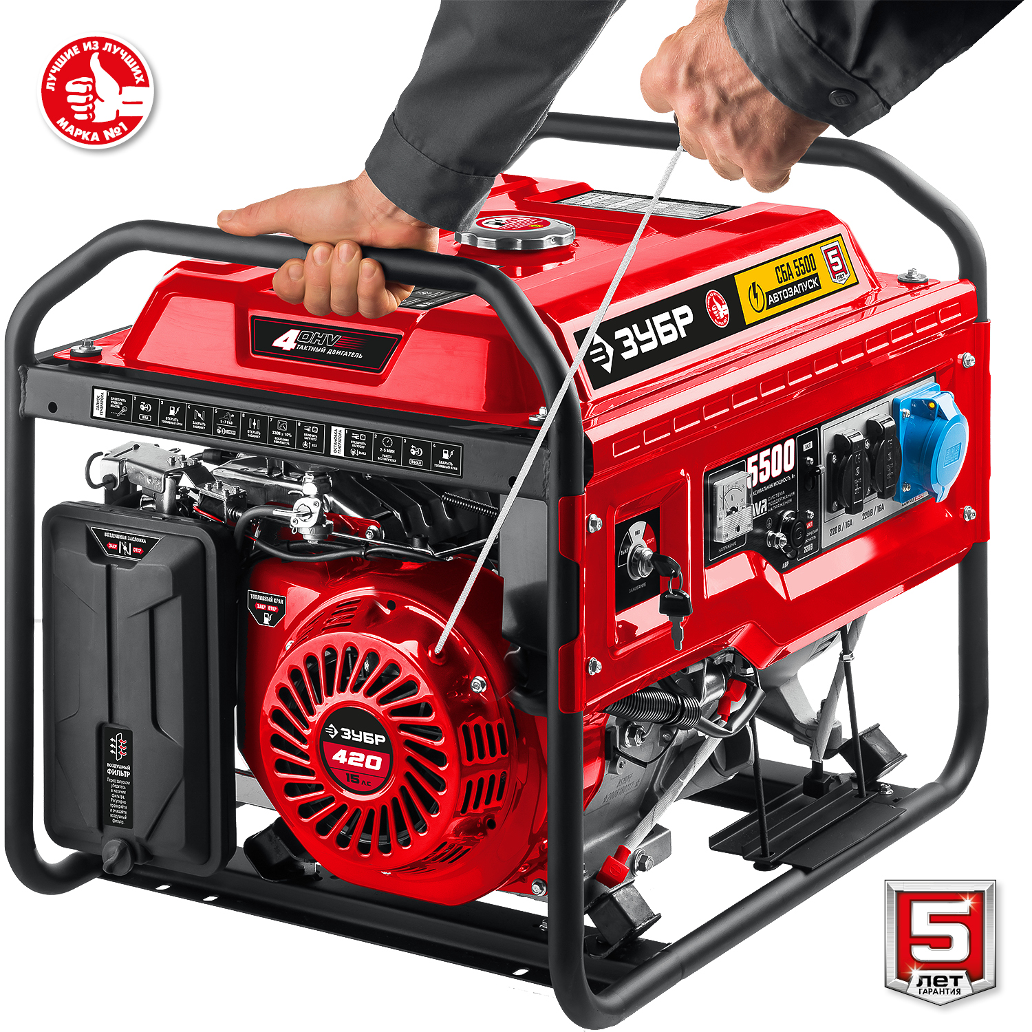 - Электрический стартер облегчает запуск генератора в любых условиях