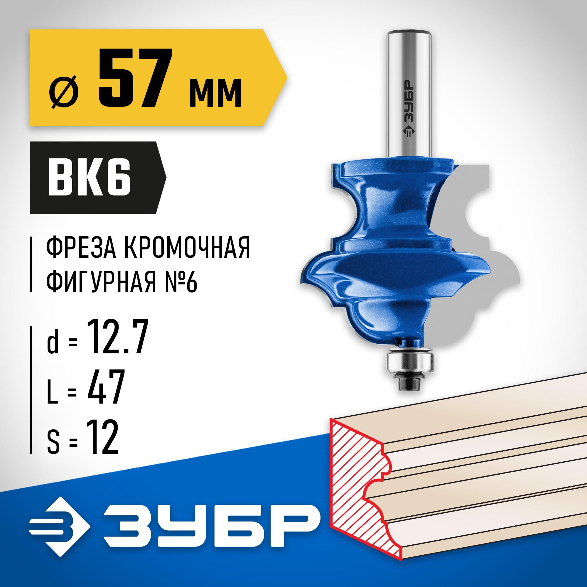 ЗУБР 57 x 47.6 мм, хвостовик 12 мм, фреза кромочная фигурная №6, Профессионал (28717-57)