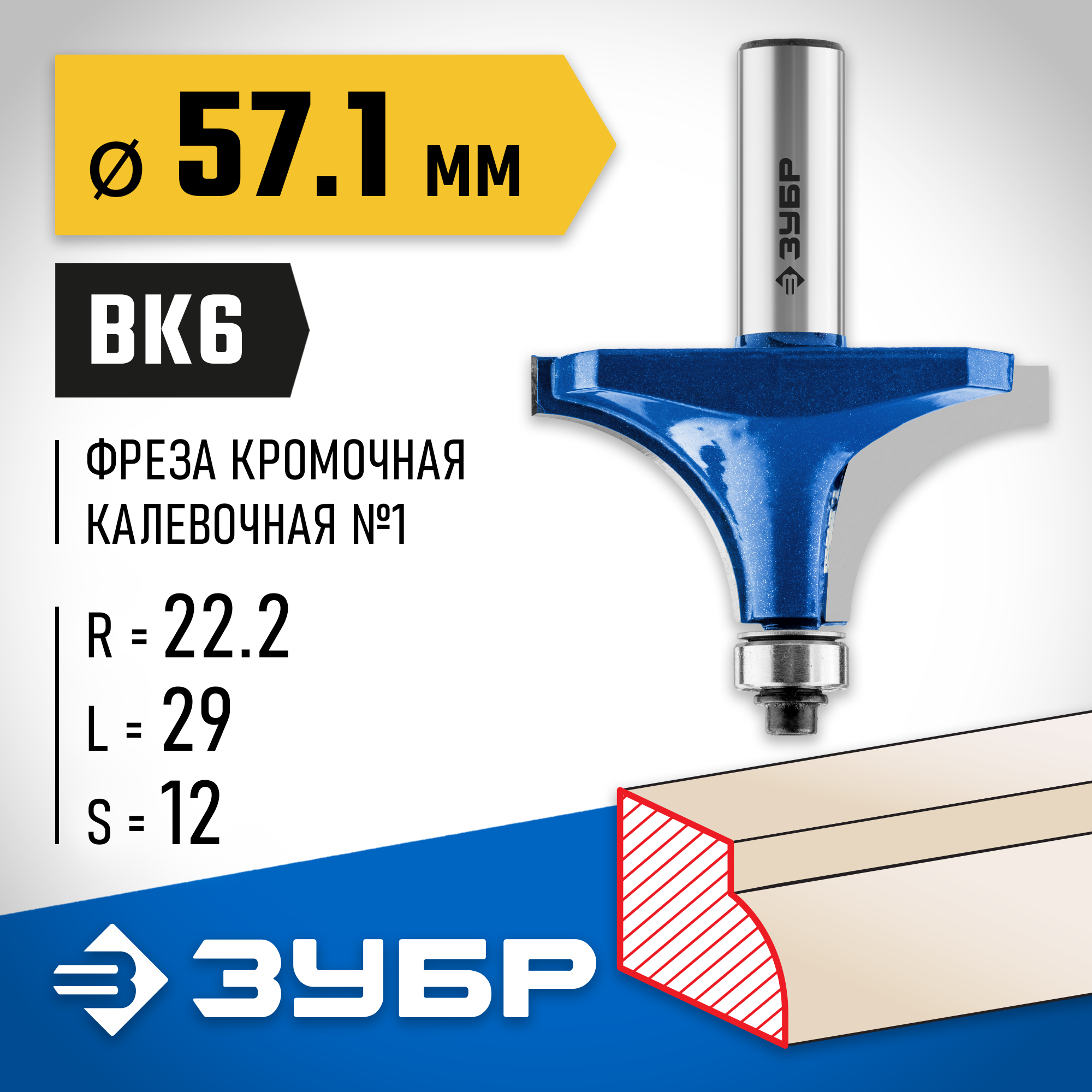 ЗУБР 57.1 x 29 мм, радиус 22 мм, фреза кромочная калевочная №1, Профессионал (28701-57.1)